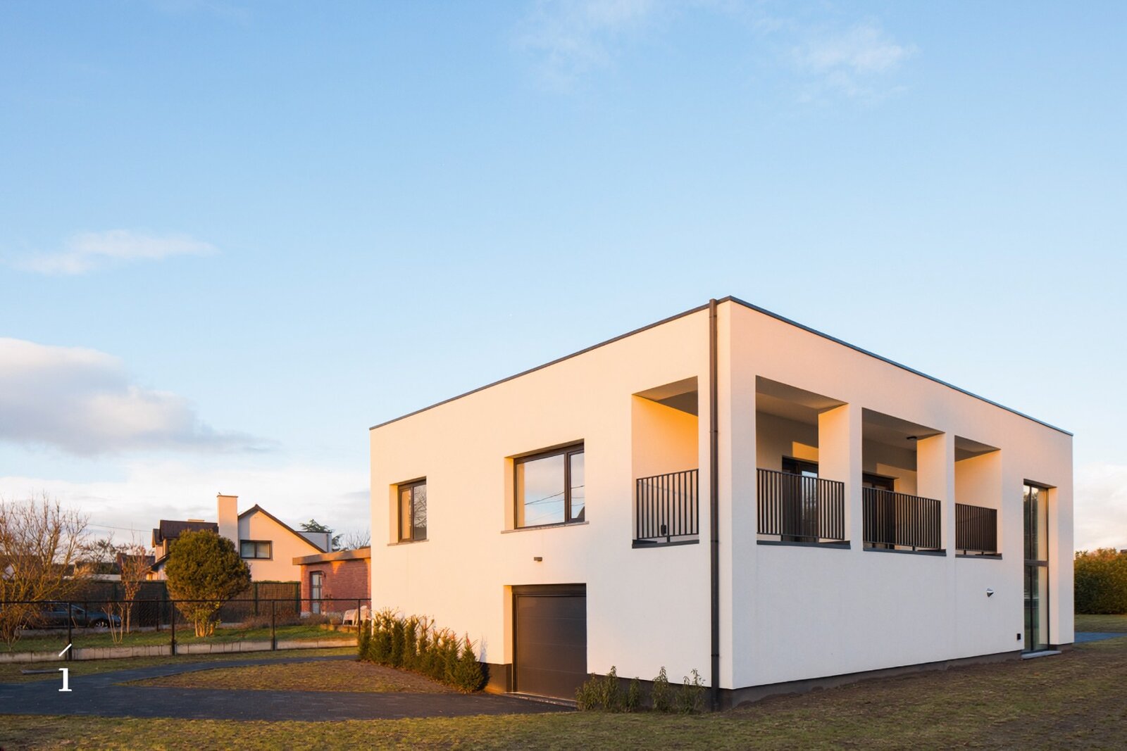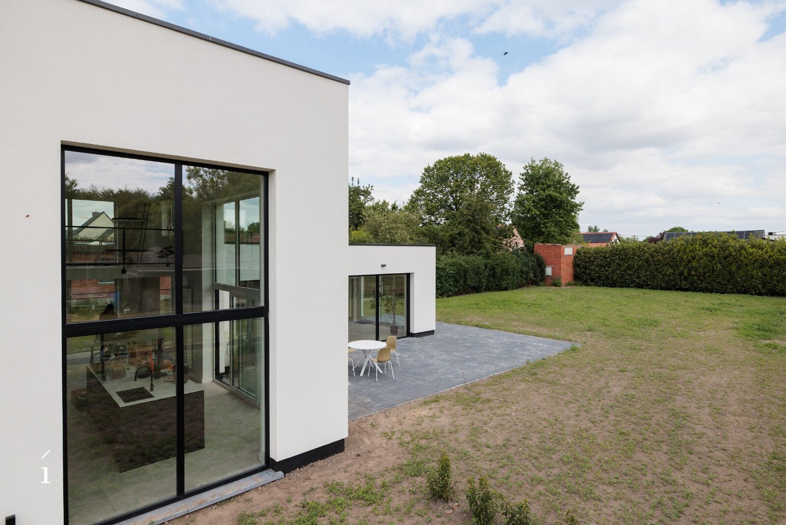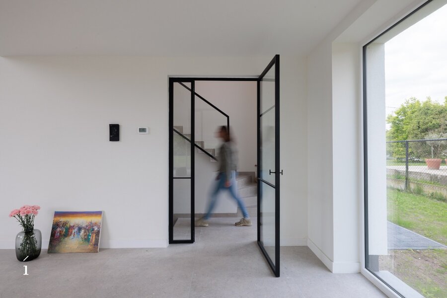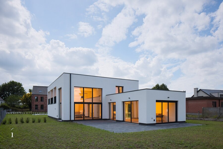 De inkomhal geeft uit op de ruime leefruimte, waar de vide en grote raampartijen zorgen voor een open en luchtig gevoel. De leefkeuken met eetplaats staat in directe verbinding met het terras en de tuin, ideaal voor gezellige familiemomenten of etentjes met vrienden. Naast de keuken vinden we de praktische wasplaats/bijkeuken, voorzien van alle technieken met verder enkele polyvalente ruimten die dienst kunnen doen als berging, fitness, etc.. Ideaal voor wie nood heeft aan ruimte of een handige plek voor vrije beroepers.