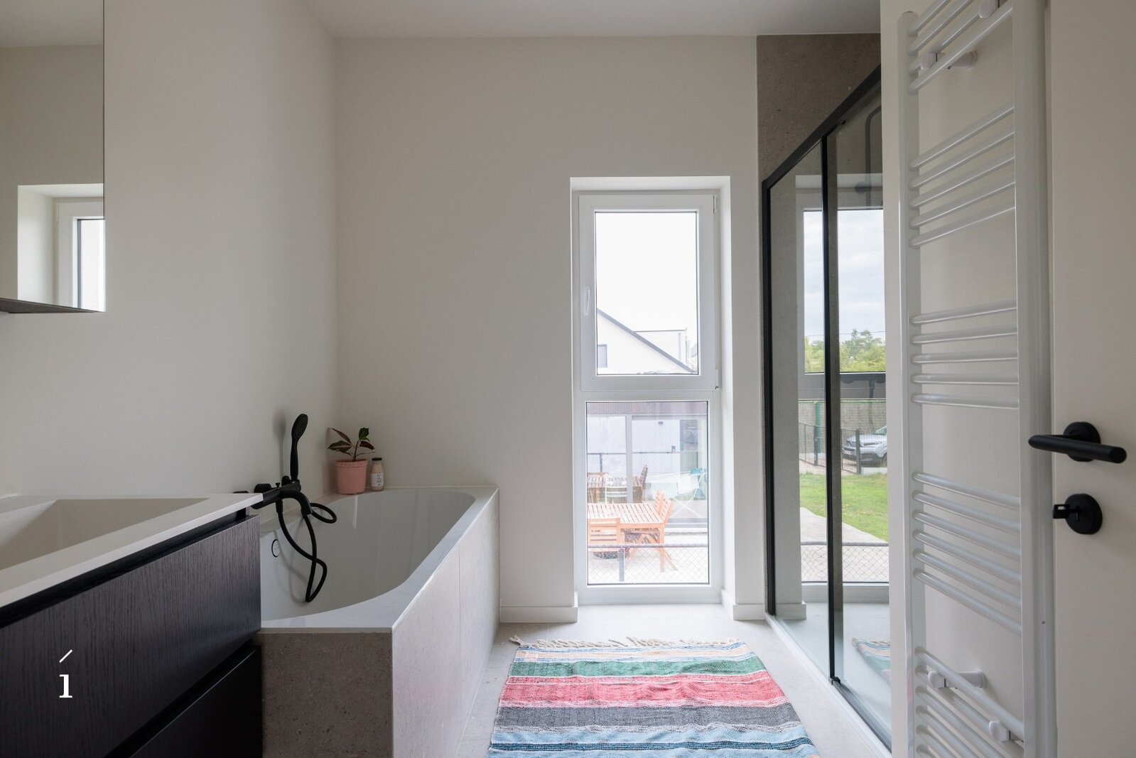 Met vier slaapkamers en twee smaakvolle badkamers biedt deze woning ruimte aan een gezin, of aan wie graag royaal leeft. Buiten wordt het wonen verder doorgetrokken: een tuin met terras op het gelijkvloers, een overdekt terras boven, en een vergunde mogelijkheid tot zwembad maken het plaatje compleet.