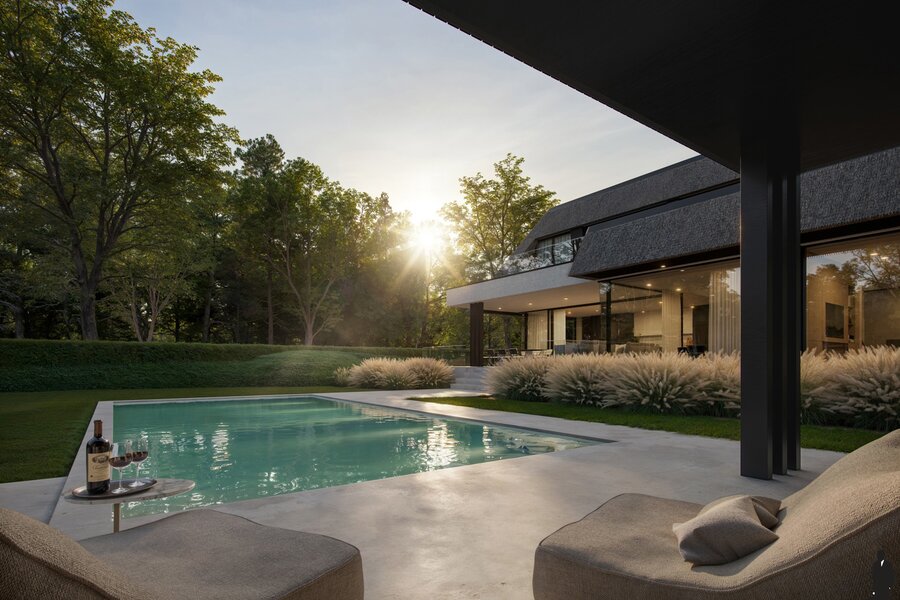 High-end afgewerkte nieuwbouwvilla voorzien van alle comfort, overloopzwembad, poolhouse