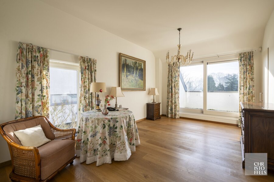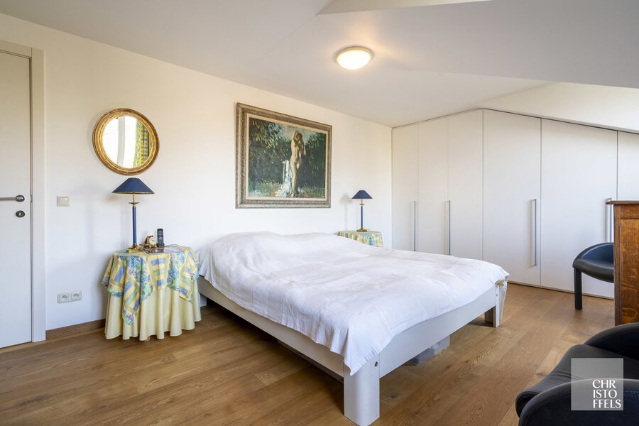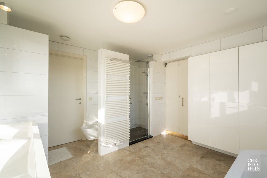 De verdieping is voorzien van 3 slaapkamers, waarvan de masterbedroom beschikt over een privé-dressing en een dakterras. Tevens is er nog een badkamer en een wasruimte.