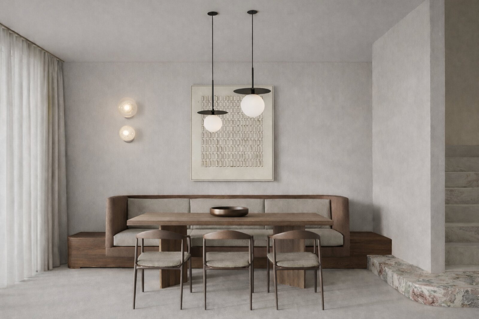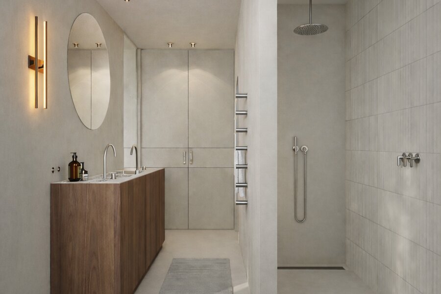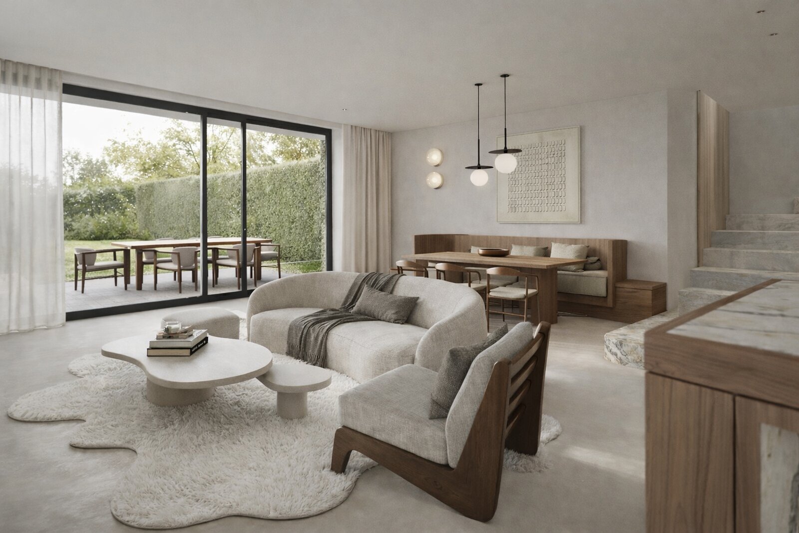 Op het gelijkvloers bevindt zich een stijlvolle inkomhal met gastentoilet die uitmondt in een lichtrijke leefruimte met open leefkeuken. Grote raampartijen zorgen voor een aangename connectie met het terras, ideaal voor wie houdt van binnen-buitenleven aan zee.