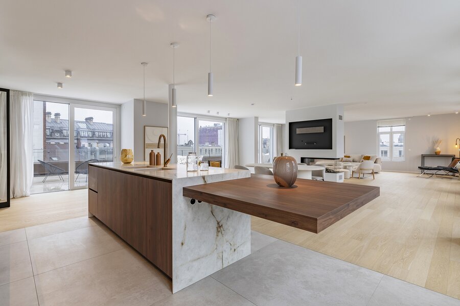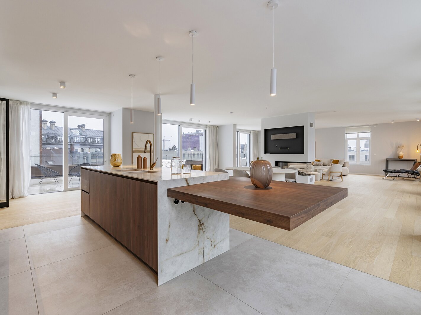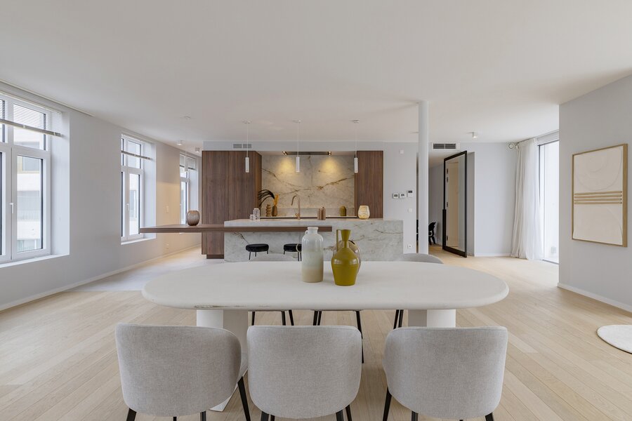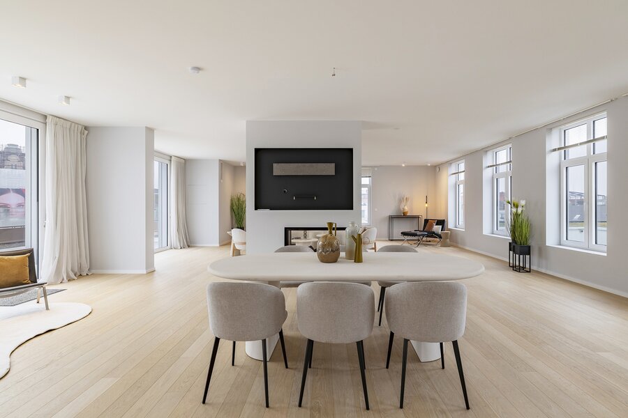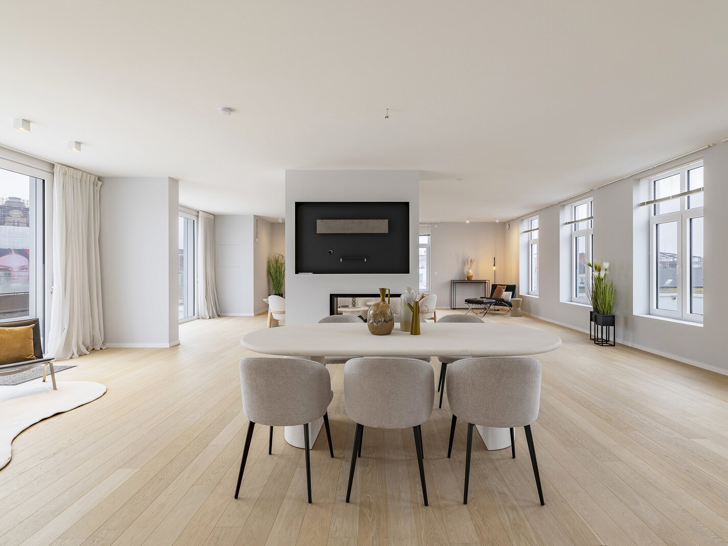 Dit exclusieve penthouse van 300 m² met een riant dakterras bevindt zich in het prestigieuze project De Dams, hartje Antwerpen. Het biedt een unieke combinatie van ruimte, luxe en comfort, met een adembenemend zicht en hoogwaardige afwerking tot in de kleinste details.