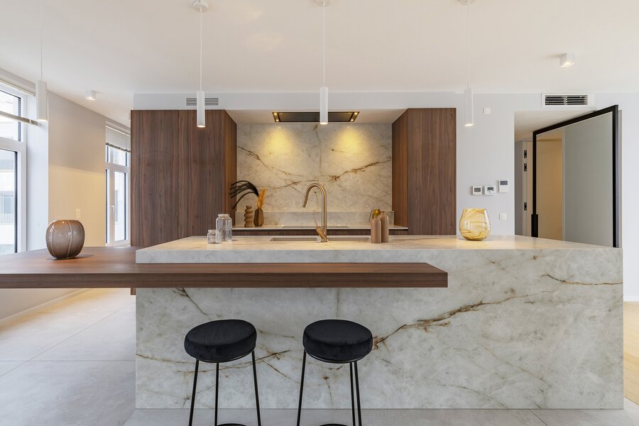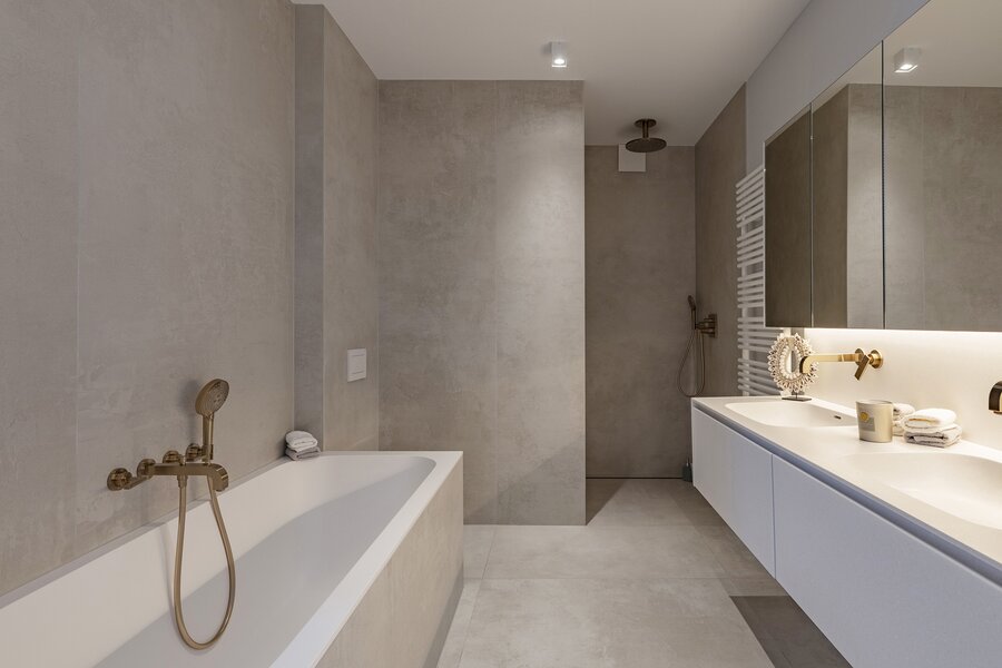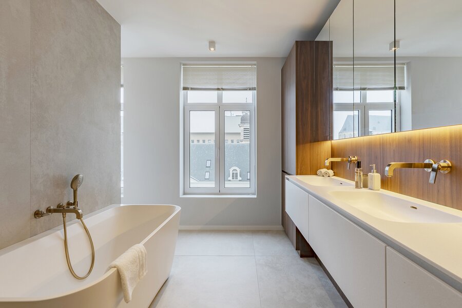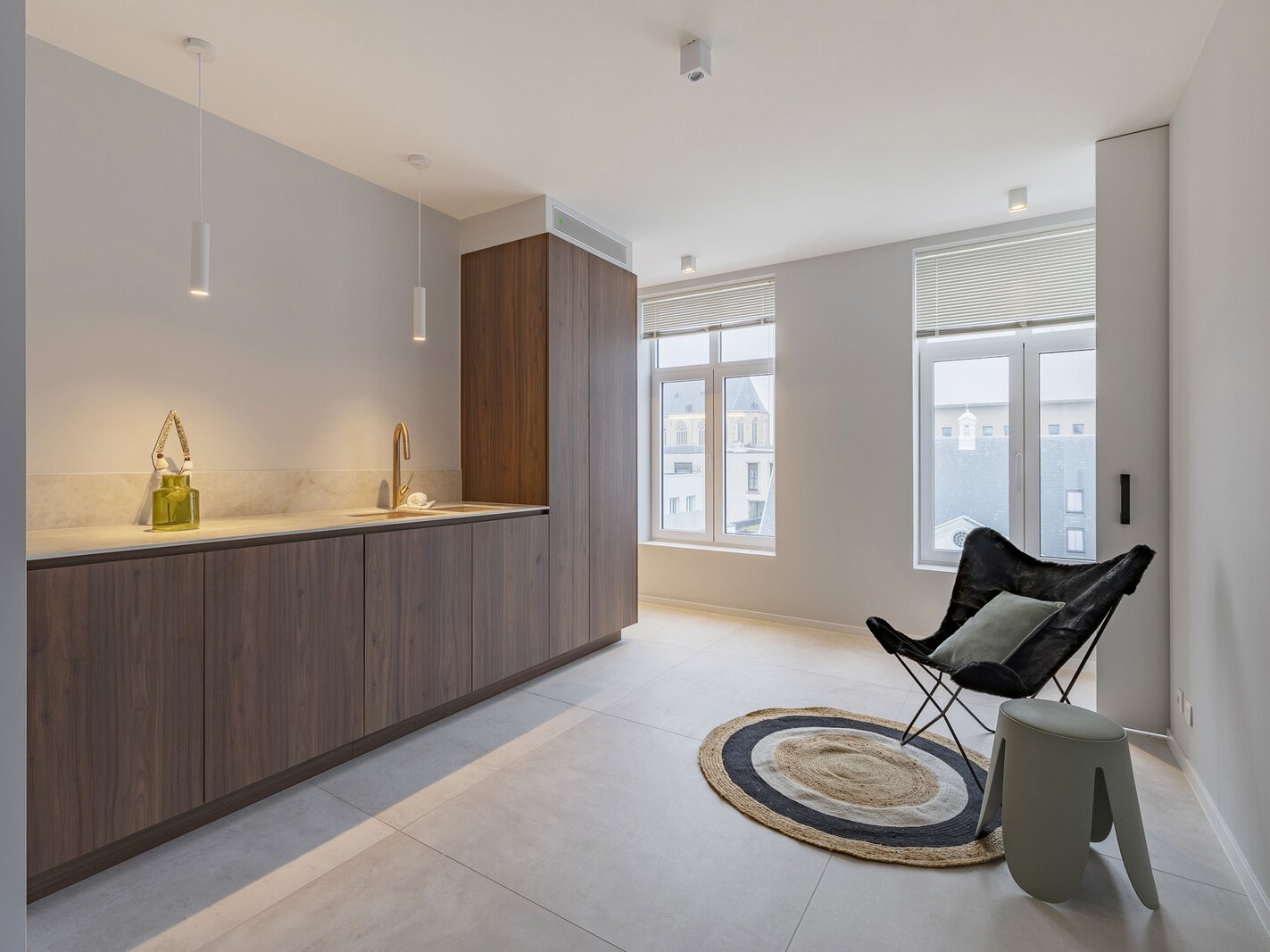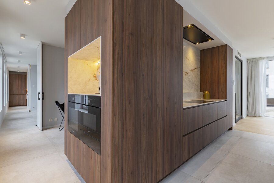 Bij binnenkomst in de ruime inkomhal ervaart u meteen de grandeur van dit penthouse. De open leefruimte met prachtig geïntegreerde gashaard vormt het kloppende hart van het penthouse en staat in directe verbinding met de moderne, volledig uitgeruste keuken. Aansluitend aan de keuken bevindt zich een ruime bijkeuken, perfect voor extra opslag evenals een praktische wasruimte die voorzien is van alle nodige aansluitingen. Verder vind je de ruime master bedroom met dressing en ensuite badkamer, voorzien van een inloopdouche, ligbad, dubbel wastafelmeubel en toilet. Daarnaast zijn er nog twee ruime slaapkamers die eveneens gebruik kunnen maken van een tweede luxueus afgewerkte badkamer.