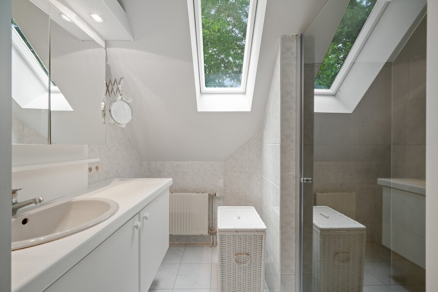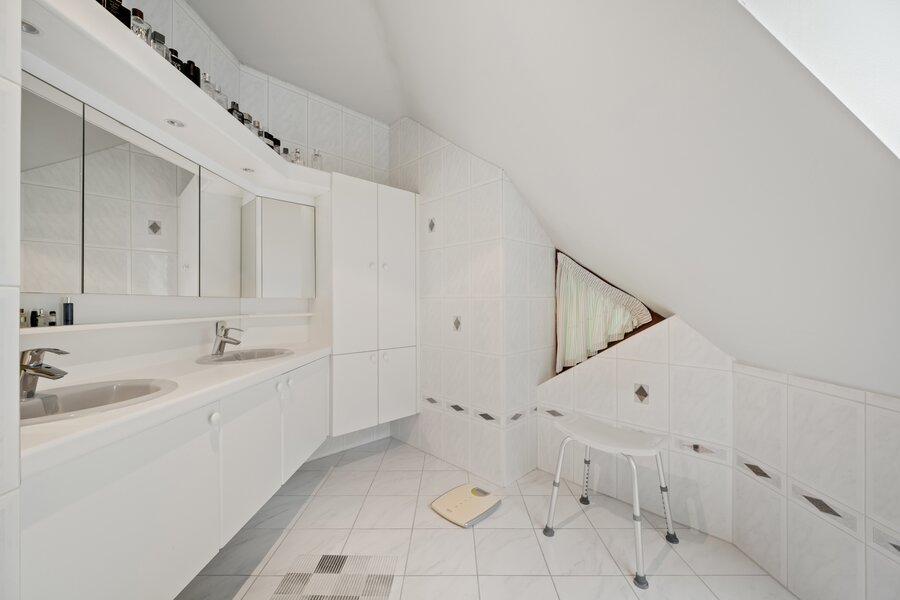 Op de eerste verdieping bevinden zich drie ruime slaapkamers, twee badkamers en een extra kleinere kamer. De master bedroom beschikt daarnaast over een eigen dressing met ingemaakte kasten.