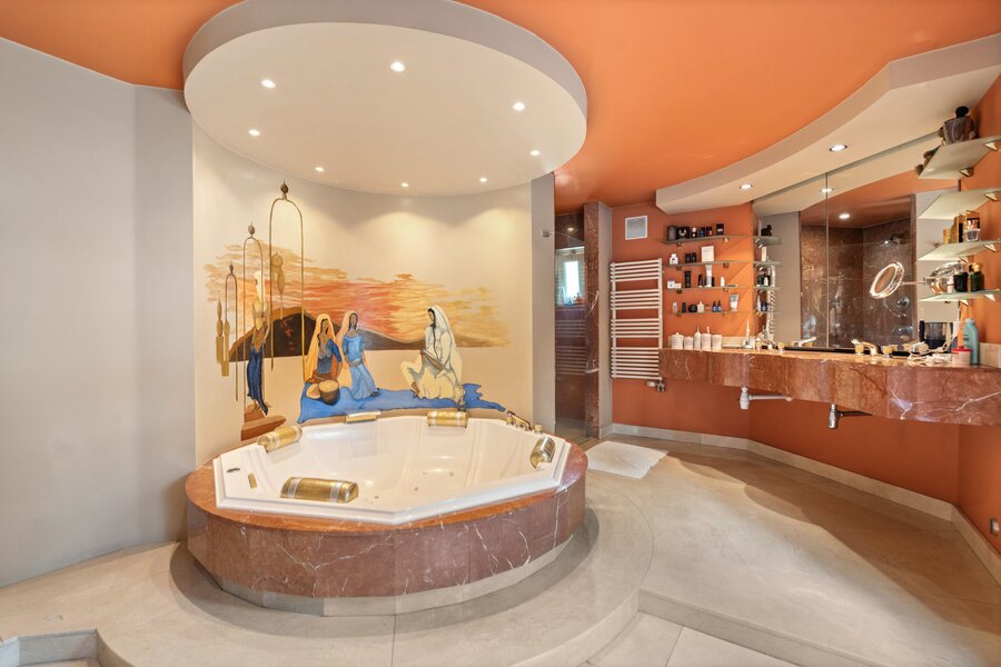 Op de eerste verdieping vinden we drie slaapkamers met allen een en-suite badkamer en een apart toilet.