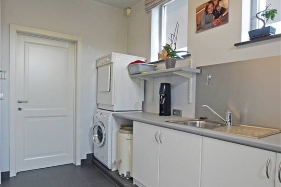 Aansluitend aan de keuken is er een bijkeuken die ook dienst doet als wasplaats en toegang biedt naar de inpandige garage met automatische poort.