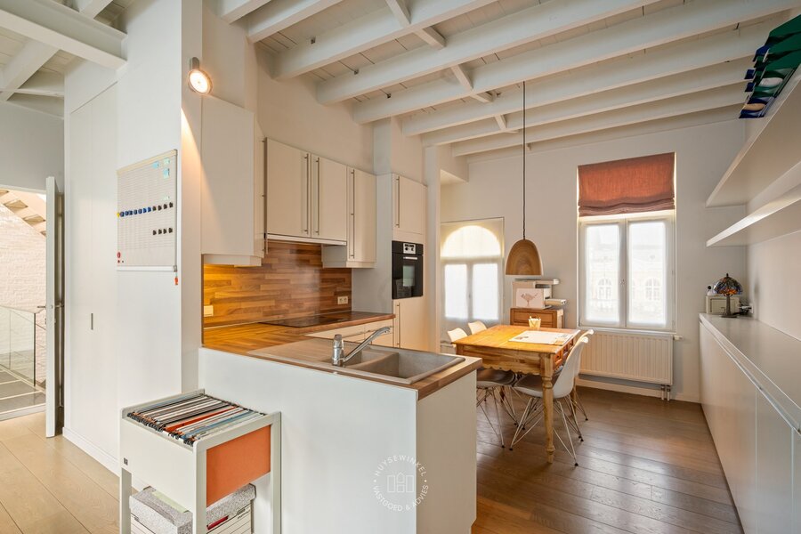 Verder beschikt de woning over een afzonderlijke duplex woonentiteit met eigen leefruimte, keuken, slaapkamer, badkamer en privéterras. Deze zelfstandige ruimte leent zich uitstekend voor kangoeroewonen, een praktijk aan huis, het ontvangen van gasten in alle privacy of nog twee bijkomende slaapkamers.