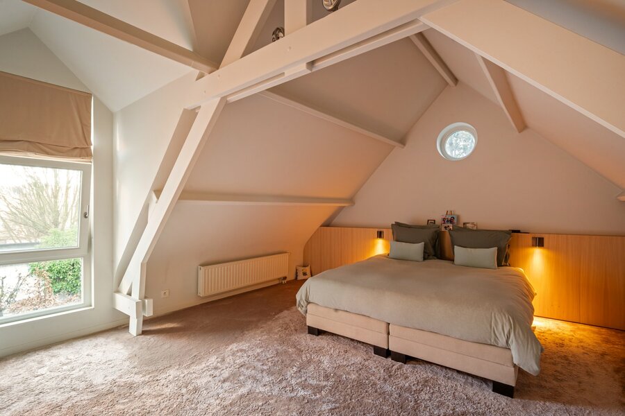 De eerste verdieping omvat onder meer de master suite, voorzien van een ruime dressing en een eigen badkamer die samen zorgen voor een comfortabele en discrete privésfeer. Op de bovenste verdieping bevindt zich een bijkomende slaapkamer met eigen badkamer, perfect als volwaardige extra suite.
