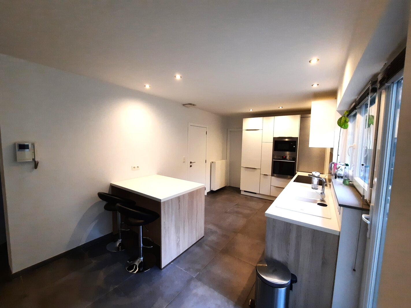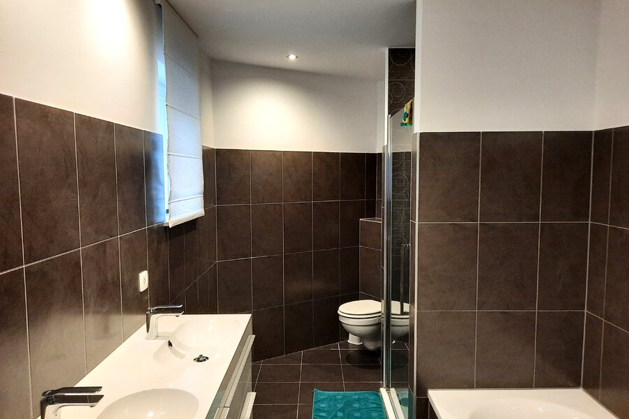 De verdieping omvat vier volwaardige slaapkamers en twee badkamers, wat deze woning ideaal maakt voor gezinnen of voor wie wonen en werken wil combineren.