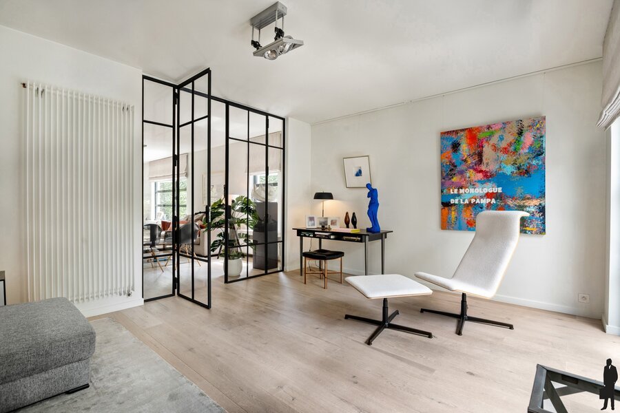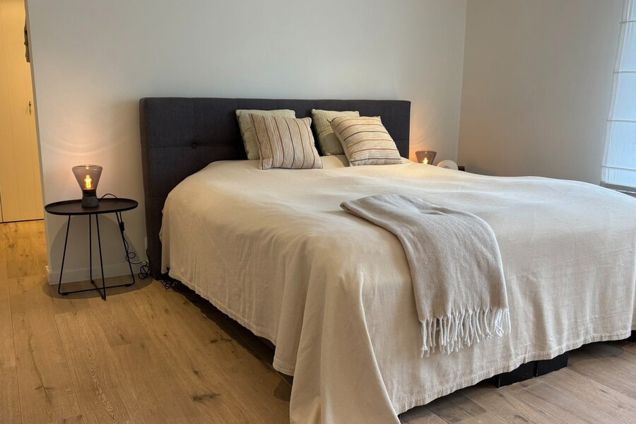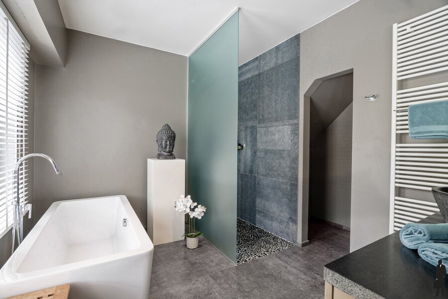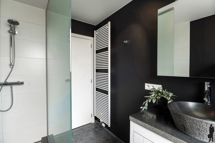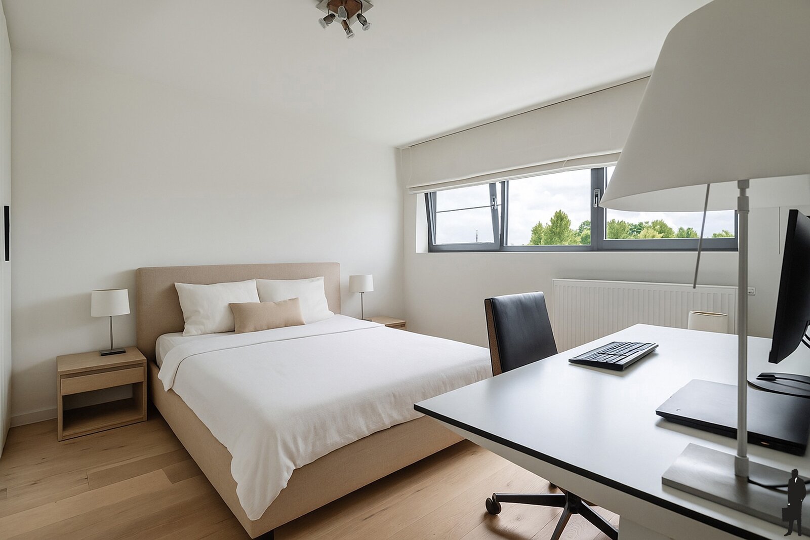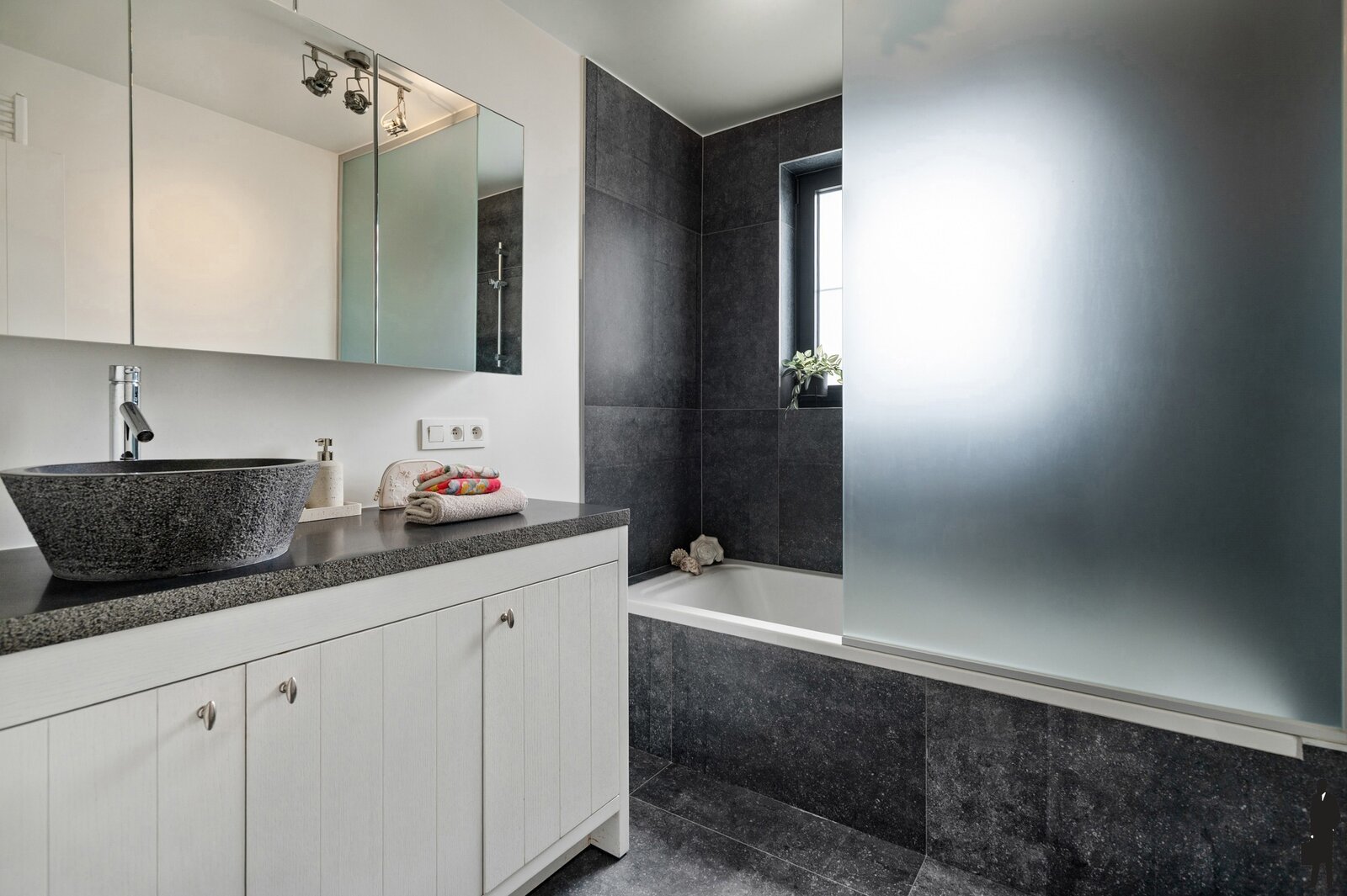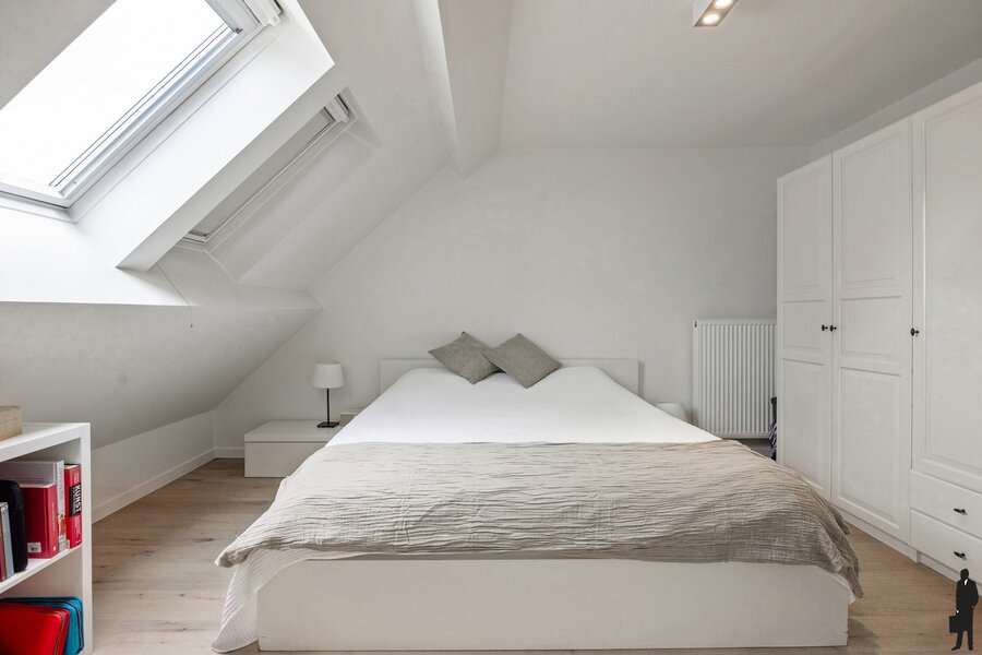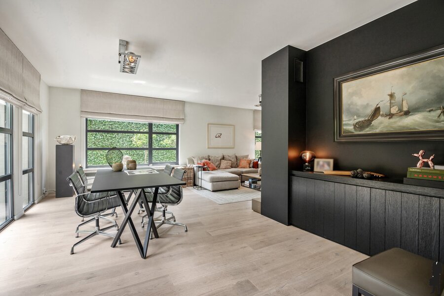 - Kwalitiatieve afwerkingsgraad (parketvloeren, zwart stalen deuren, ingemaakte kasten, Belgische blauwe steen)