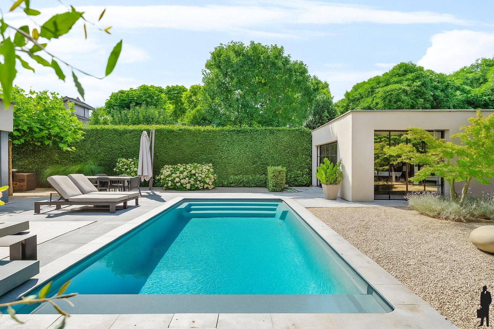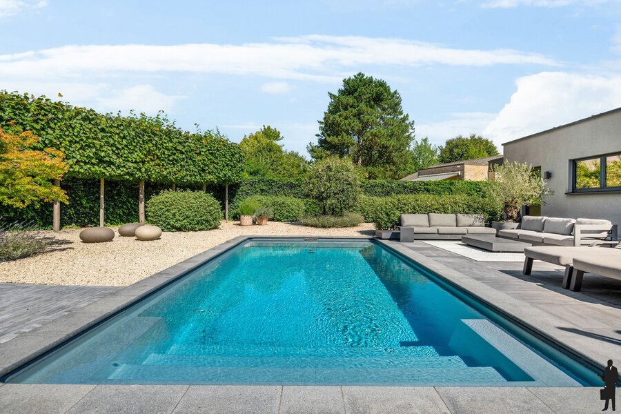 - Verwarmd zwembad (ca. 1m50 diep) en ingerichte poolhouse (ca. 60m²)met ruime berging (ca. 22m²)