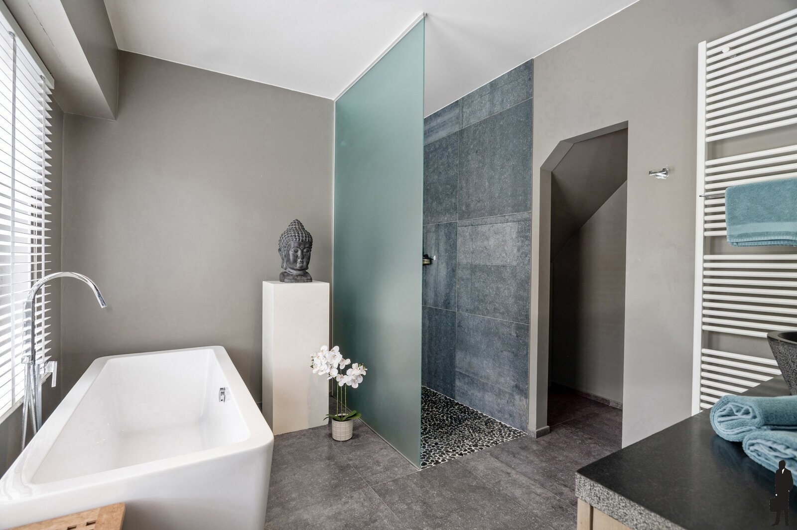 - Master bedroom met dressing en badkamer met ligbad, inloopdouche, toilet en 2 wastafels (ca. 35m²)