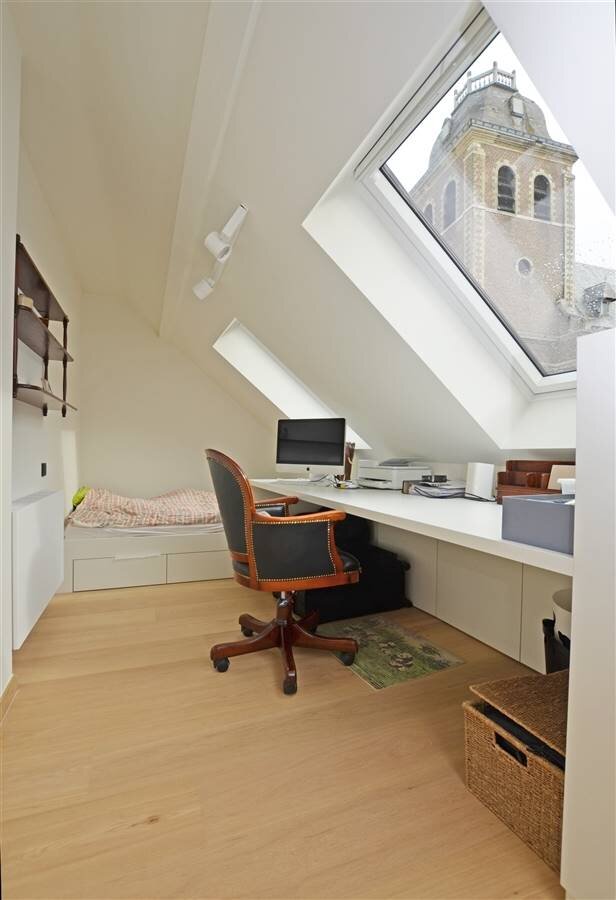 De derde slaapkamer met inbouwkasten is momenteel ingericht als bureel.