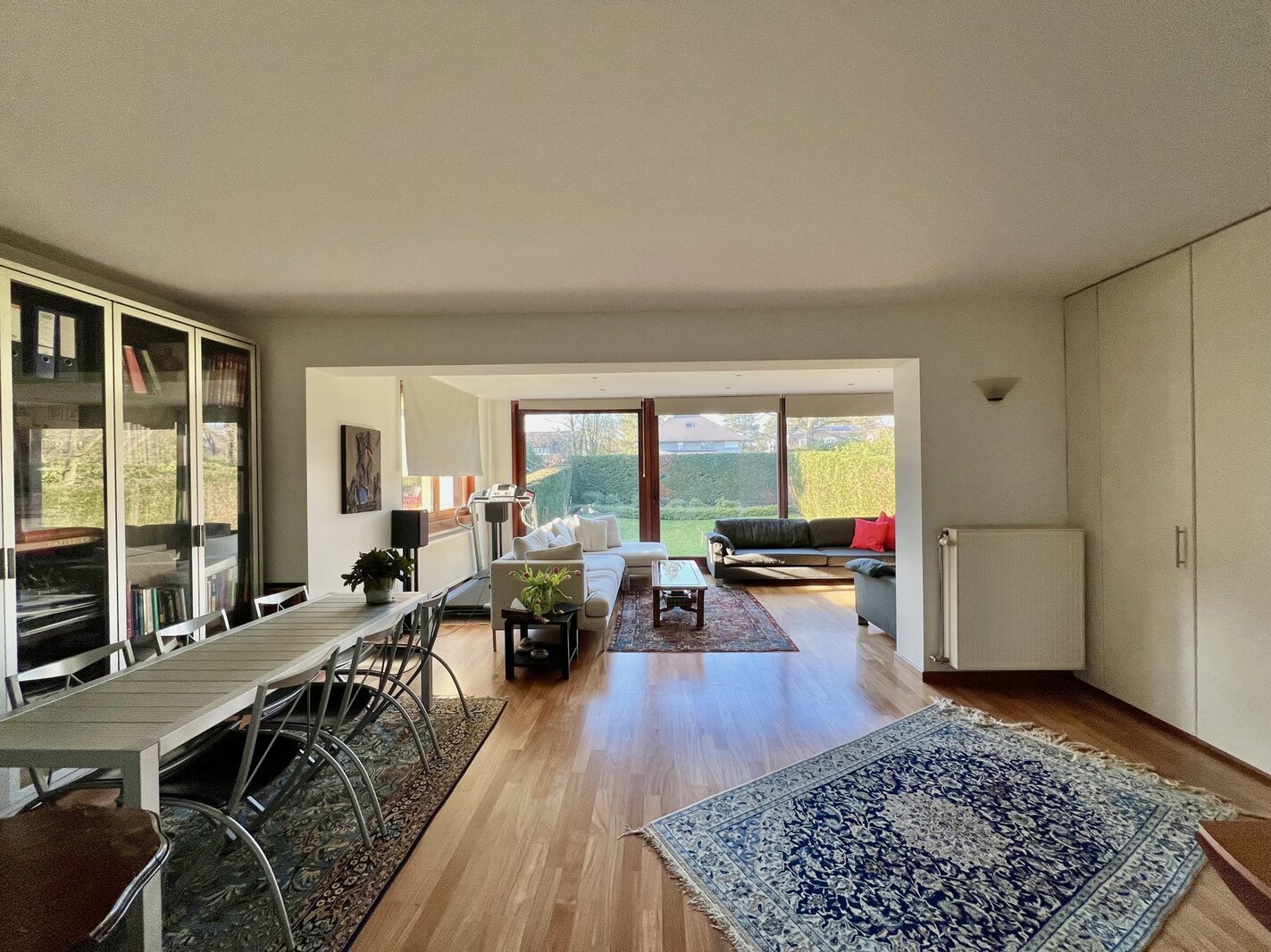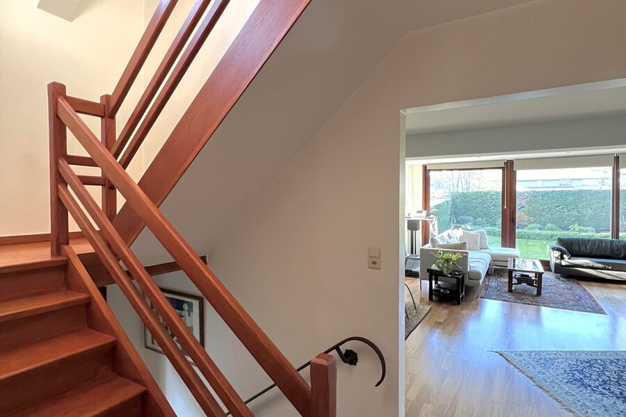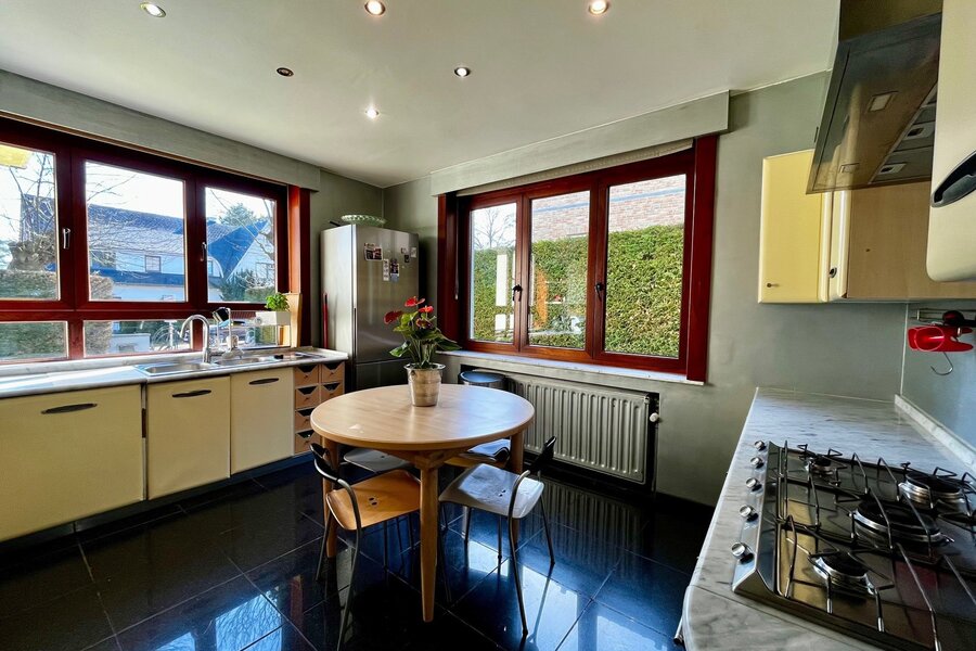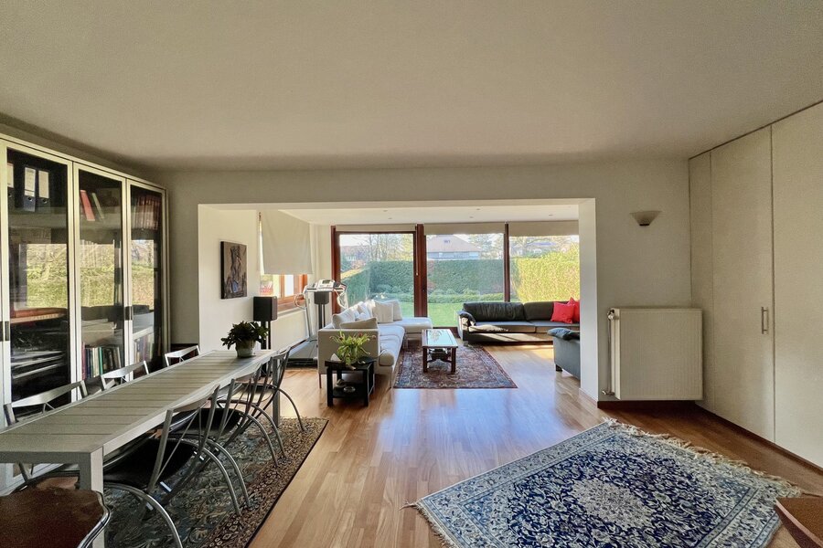 De woning biedt een ideaal programma voor een gezin, met ruime ontvangstruimtes zoals een eetkamer, dubbele salon met toegang tot het terras, en een aparte, volledig uitgeruste keuken.