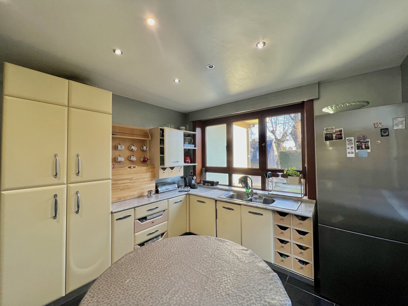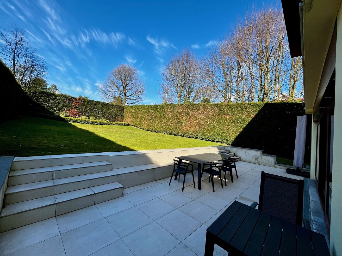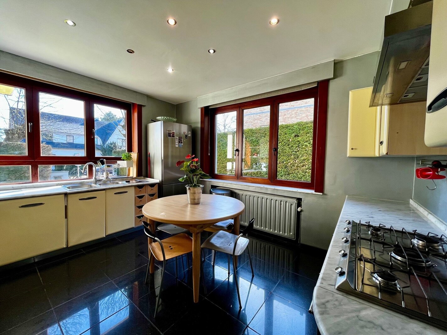 De woning biedt een ideaal programma voor een gezin, met ruime ontvangstruimtes zoals een eetkamer, dubbele salon met toegang tot het terras, en een aparte, volledig uitgeruste keuken.