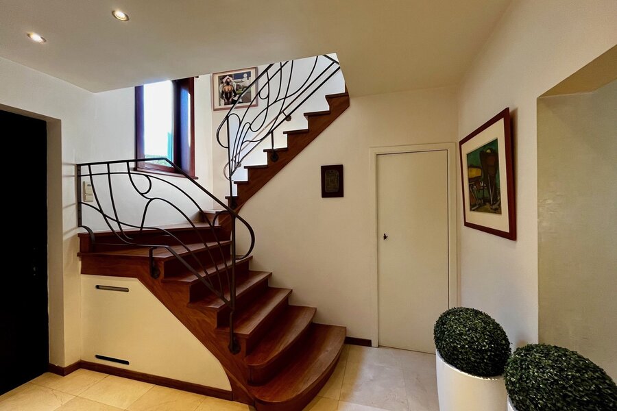 Daarnaast is er een tweede ruime slaapkamer met terras en eigen badkamer, en nog 2 tot 3 slaapkamers op de bovenste verdieping, met een extra badkamer.