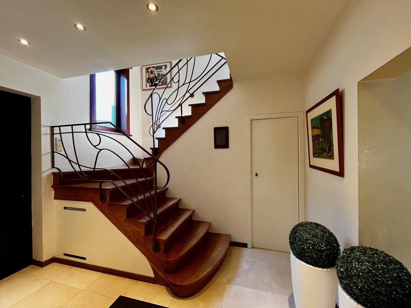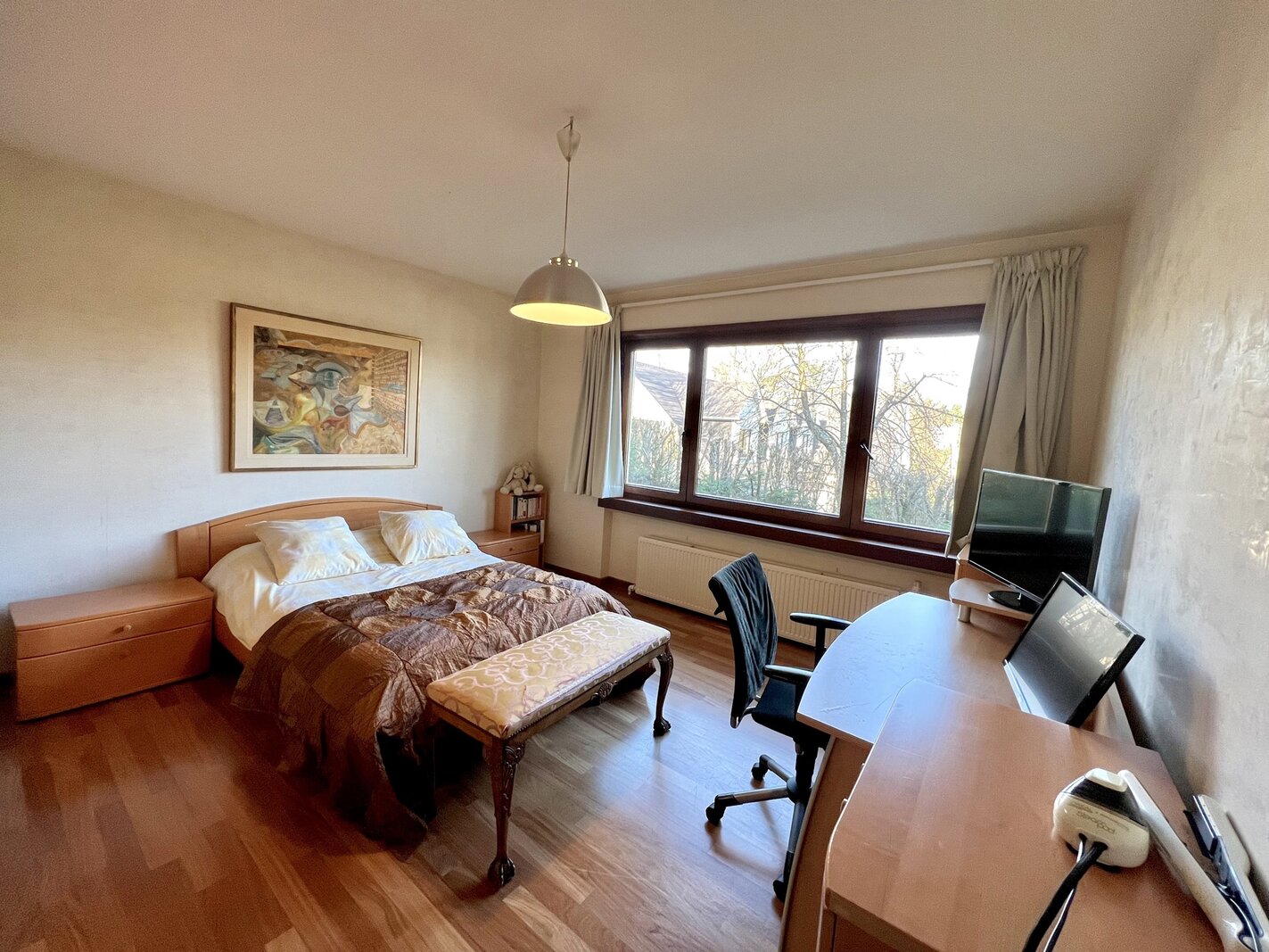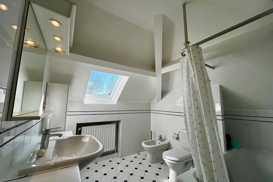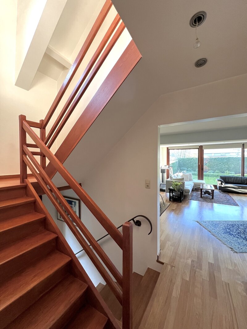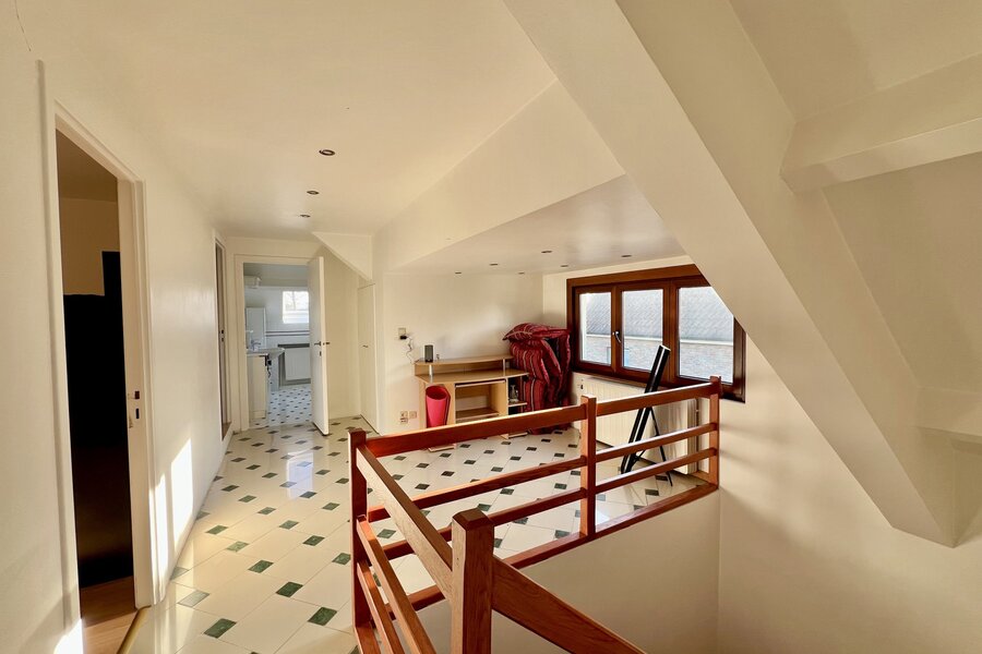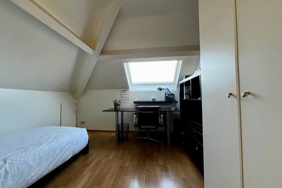 Op de twee bovenverdiepingen bevindt zich een grote multifunctionele ruimte met een badkamer, momenteel ingericht als tv-salon met uitzicht op de tuin. Deze ruimte kan gemakkelijk omgevormd worden tot een prachtige ouderlijke suite met eigen badkamer, dubbele dressing en salon.