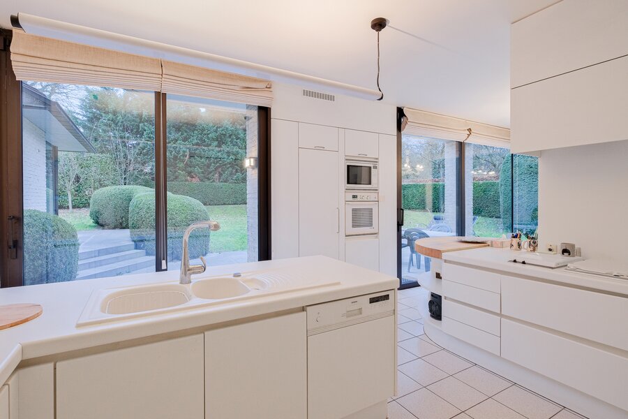 In de kelder: Garage voor twee auto's en parkeerplaatsen, drie kelders en een stookruimte. Tevens aanwezig: dubbele beglazing, een werkende open haard, een alarmsysteem, een gepantserde deur, een recent geïnstalleerde gasketel en een waterontharder. Energielabel (EPC): E. Een charmante villa die in de smaak zal vallen bij liefhebbers van rust, groen en ruimtelijk wonen. Mis deze kans niet!