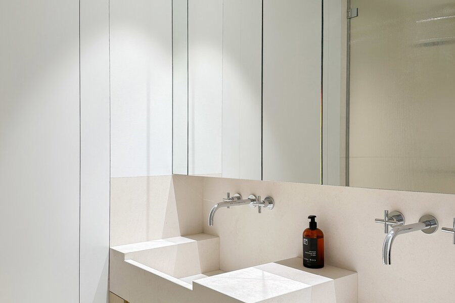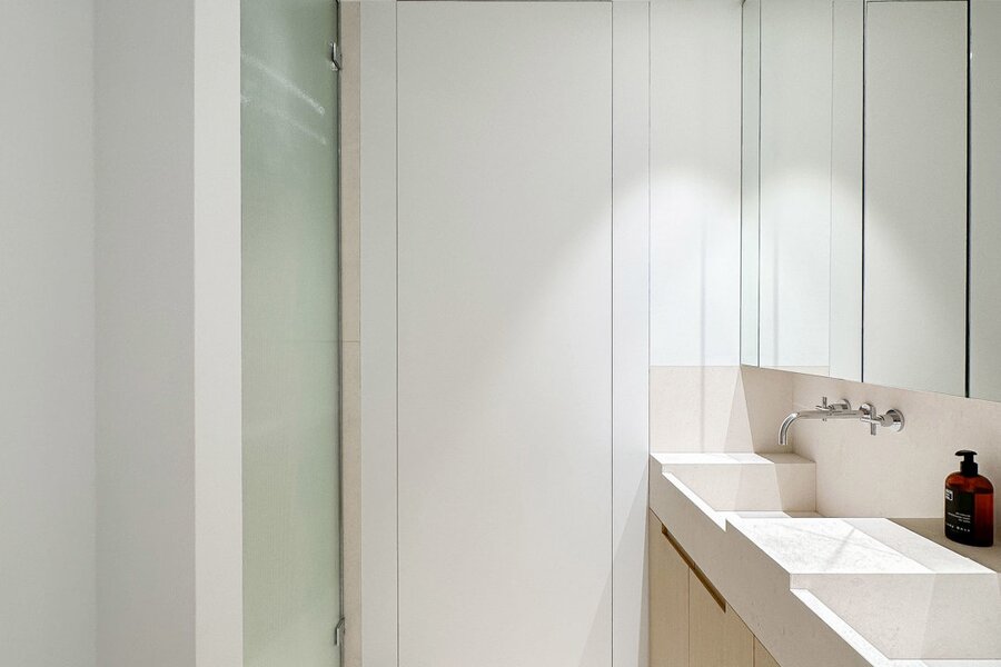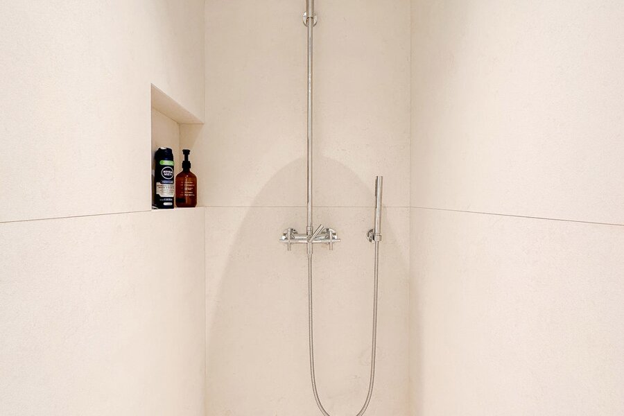Achteraan bevinden er zich 2 rustig gelegen slaapkamers, voorzien van ingemaakte kasten. Er is 1 afzonderlijke, luxueus ingerichte douchekamer met lavabo en douche.