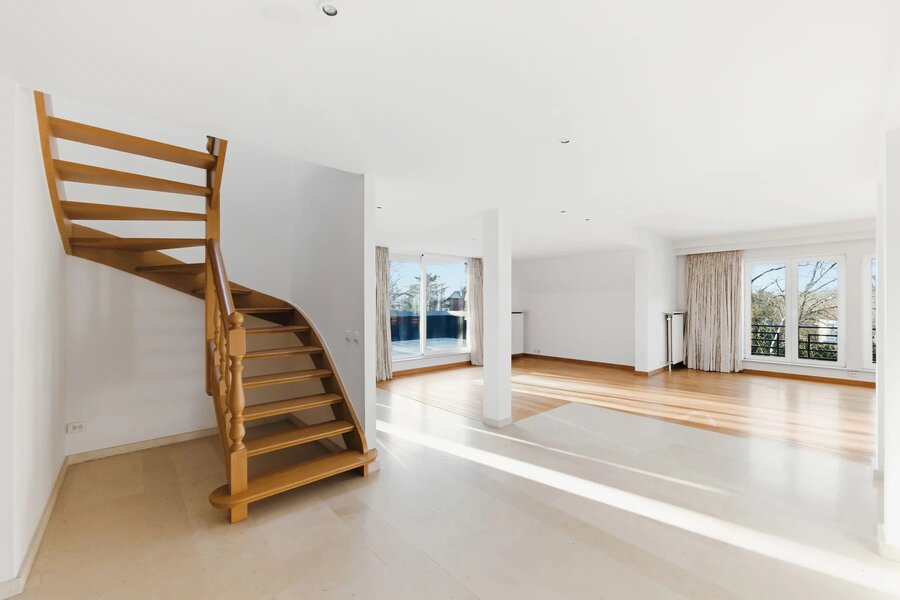 Victoire-Junot biedt u graag een exclusieve preview van dit prachtige duplex penthouse, ideaal gelegen aan de poort van het Forêt de Soignes en de Mellaerts vijvers, binnen handbereik van het openbaar vervoer en de Place Dumon. Met ongeveer 275 m² woonoppervlak beschikt dit uitzonderlijke pand over prachtige ontvangstruimten badend in natuurlijk licht, compleet met open haard en een studeerkamer. De volledig uitgeruste keuken, met ontbijthoek, combineert praktisch en gezellig. Het slaapgedeelte bestaat uit drie slaapkamers, een studeerkamer en drie badkamers met douche, waardoor optimaal comfort gegarandeerd is. Het appartement heeft ook twee prachtige terrassen op het zuidwesten, ideaal om te genieten van het groen en de zon. Een kelder (bij de prijs inbegrepen) en een zeer grote garage met plaats voor drie auto's maken dit zeldzame object voor de prijs van € 95.000 compleet (die niet kan worden gescheiden van het appartement). Dit penthouse zal je overtuigen met zijn perfecte harmonie van comfort, helderheid en bevoorrechte locatie. PEB : D