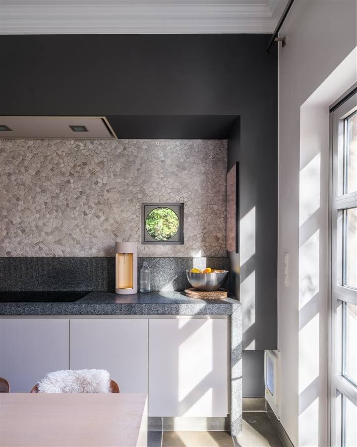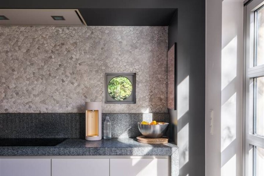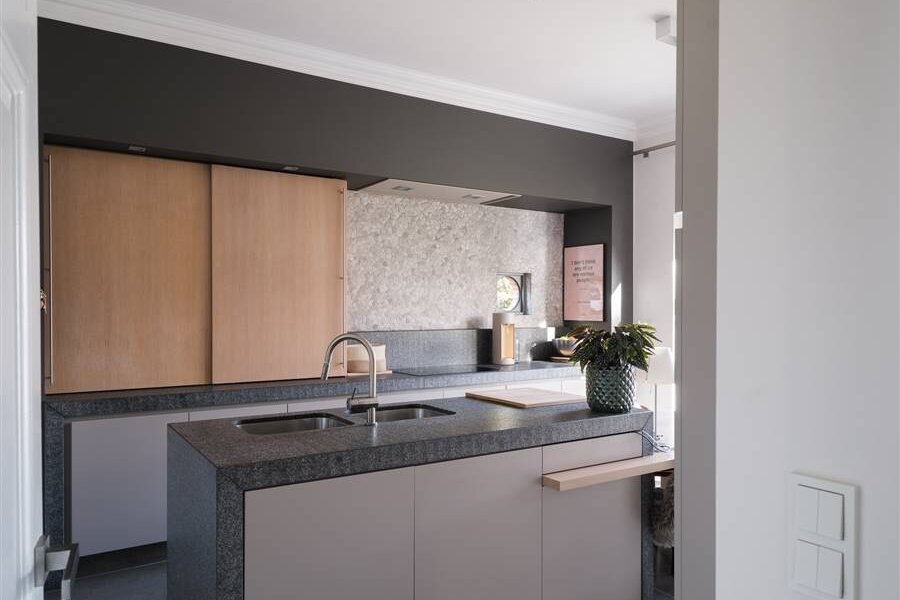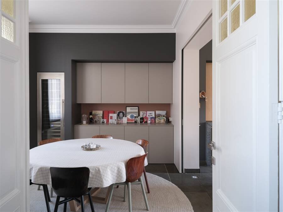 Achter de karaktervolle gevel schuilt een eigentijdse woning met EPC-label B (136 kWh/m²), waar klasse en comfort samenkomen. De ruime inkomhal met originele deuren leidt naar een lichtrijke leefruimte met aan de ene zijde een moderne, volledig uitgeruste keuken met eetruimte en tuinzicht, en aan de andere kant een gezellige living met overvloedig daglicht.