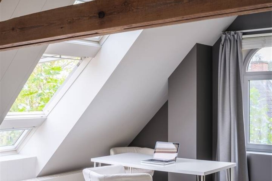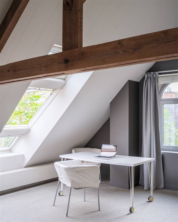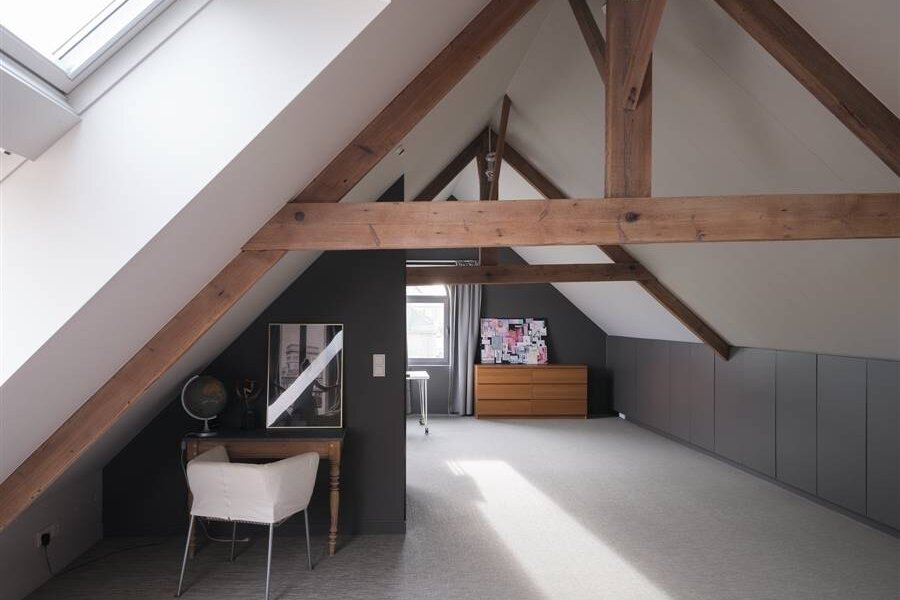 Op de eerste verdieping bevinden zich drie ruime slaapkamers, een dressing, een rustgevende badkamer en een apart waslokaal. De zolderverdieping is ingericht als slaapkamer/bureau en biedt potentieel voor een extra kamer of tweede badkamer.