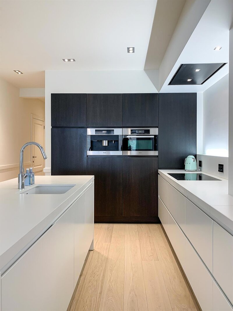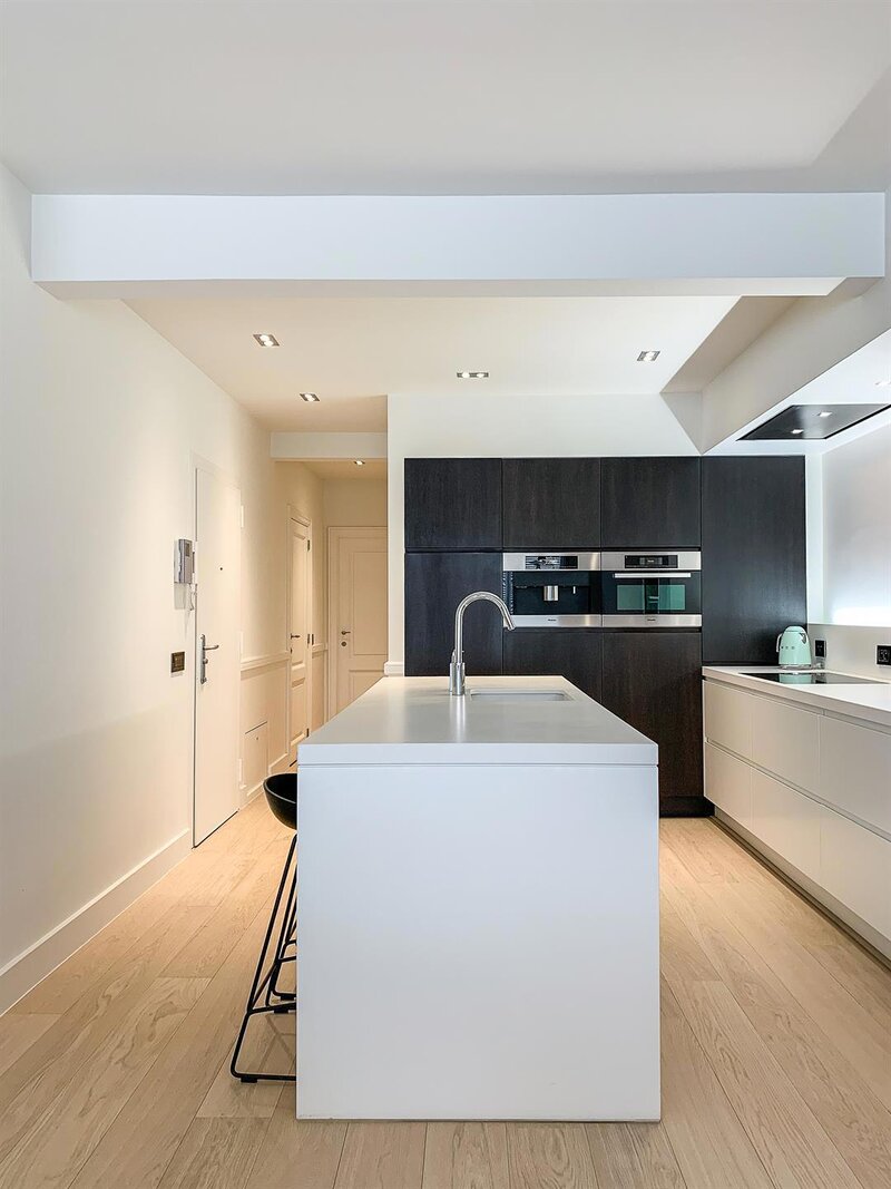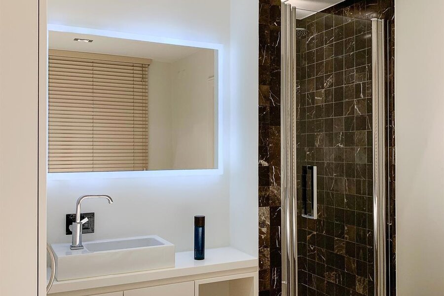 Samenstelling: zonnige ruime en zeer aangename leef- en eetruimte met open zicht op groen, villa’s en exclusieve boetieks. Zuidgerichte patio met automatisch zonnescherm. Open keuken met keukeneiland en Miele toestellen. De masterbedroom heeft een grote dressing en ensuite luxe badkamer (ligbad). De tweede slaapkamer beschikt over een kleine badkamer met aparte doucheruimte. Beide slaapkamers zijn bijzonder stil. Een zeldzame combinatie van rust, ruimte en elegantie op een unieke locatie in Knokke-Zoute!