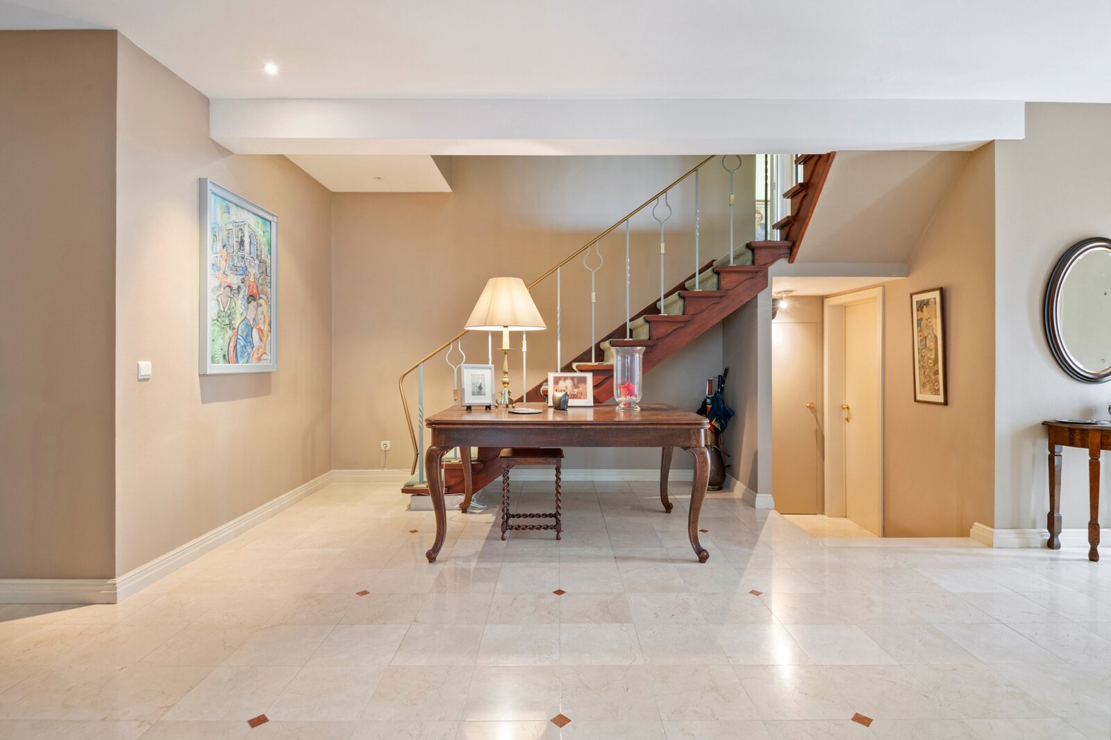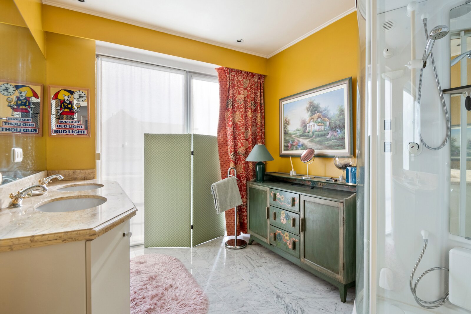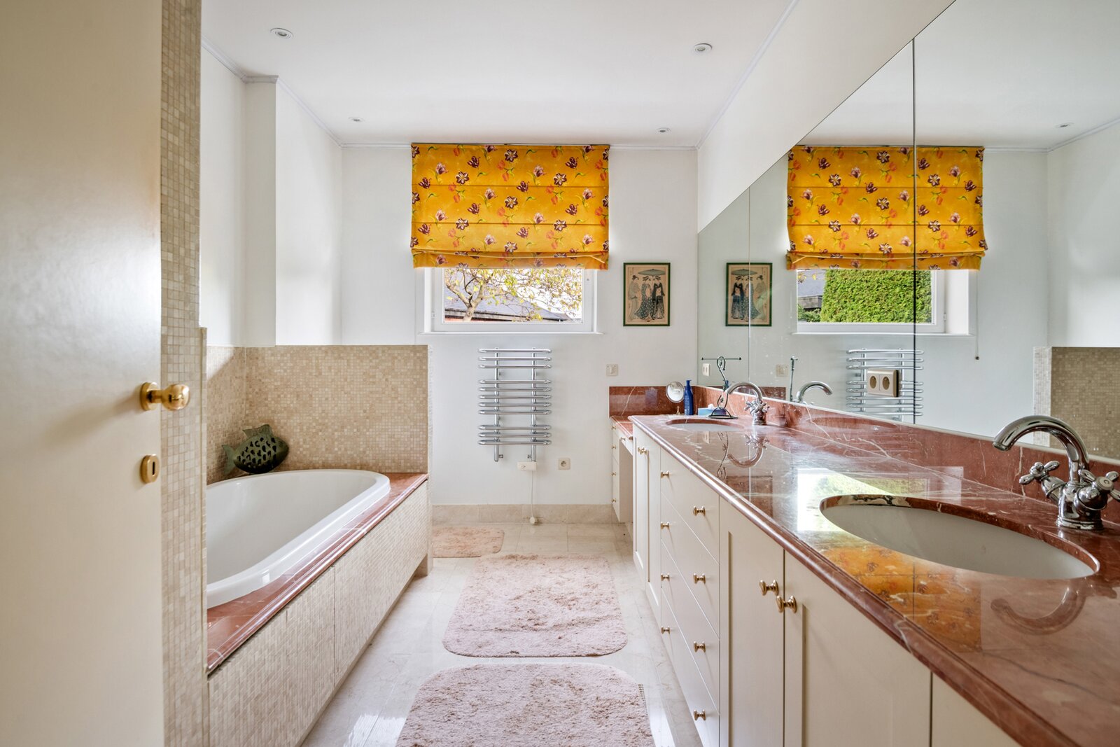 Deze instapklare woning is ideaal gelegen in de nabijheid van winkels, openbaar vervoer, scholen, sportclubs en andere voorzieningen. Alles wat een gezin nodig heeft, bevindt zich op wandel- of fietsafstand! Gelijkvloers Bij het binnenkomen word je verwelkomd in de inkomhal met gastentoilet (voorzien van handenwasser) en vestiairekast. Aansluitend bevindt zich een praktische bureauruimte, perfect voor thuiswerk. De gezellige woonkamer op parketvloer met open haard geniet van veel natuurlijk licht dankzij de grote raampartijen. De ruime, volledig uitgeruste keuken biedt alle comfort en grenst aan een handige bijkeuken met toegang tot de tuin. Op het gelijkvloers bevindt zich tevens de hoofdslaapkamer met aansluitende badkamer, uitgerust met douche, ligbad, dubbele lavabo en apart toilet. Inpandige garage. Eerste verdieping Via de trap in de inkomhal bereik je de eerste verdieping, waar zich een zeer ruime slaapkamer bevindt die eventueel kan worden opgedeeld in twee kamers. Verder is er nog een aparte dressing, een extra slaapkamer, een badkamer met douche en dubbele lavabo, en een afzonderlijk toilet. Zolder Via een deur op de eerste verdieping heb je toegang tot de zolder, die momenteel dienst doet als zeer ruime opbergruimte, maar ook extra mogelijkheden biedt. Tuin en aanhorigheden De tuin is georiënteerd op het noordoosten en vormt een aangename buitenruimte met tuinhuis — ideaal voor ontspanning of als speelruimte voor kinderen. Deze woning combineert ruimte, comfort en een uitstekende ligging, waardoor ze perfect is voor gezinnen die op zoek zijn naar een warme thuis met alle voorzieningen in de buurt.