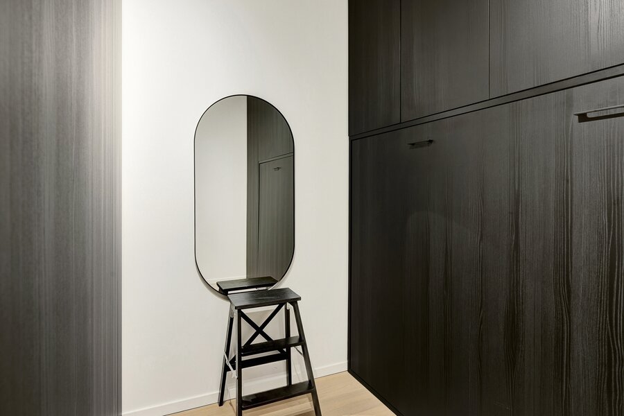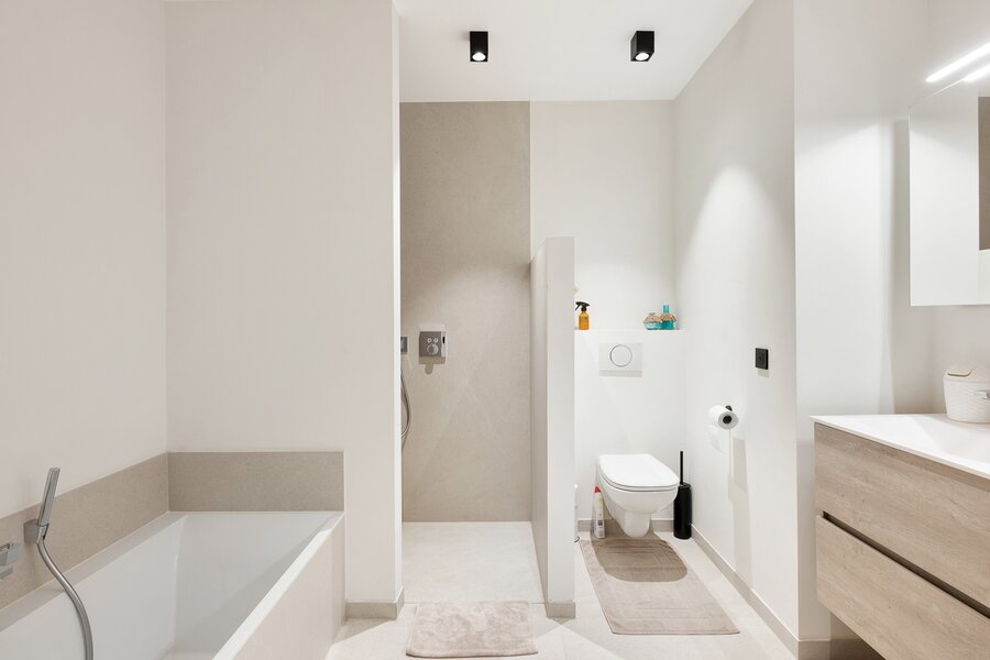 Het appartement beschikt over een een elegante master bedroom met privéterras, en een tweede kamer die dankzij het uitklapbare bed slim gebruik maakt van de ruimte. Verder is er een stijlvolle badkamer. De grote privatieve kelder en de mogelijkheid tot aankoop van een staanplaats in de residentie vervolledigen dit unieke woonaanbod.