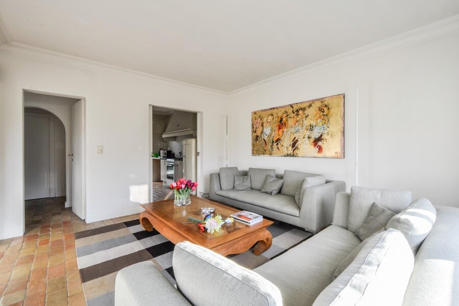 Samenstelling: Inkom met vestiaire en apart toilet. Zeer aangename, zongerichte woonkamer die uitgeeft op een terras aan de voorzijde. Aansluitend charmante eethoek. Er werd een nieuwe keuken geïnstalleerd.