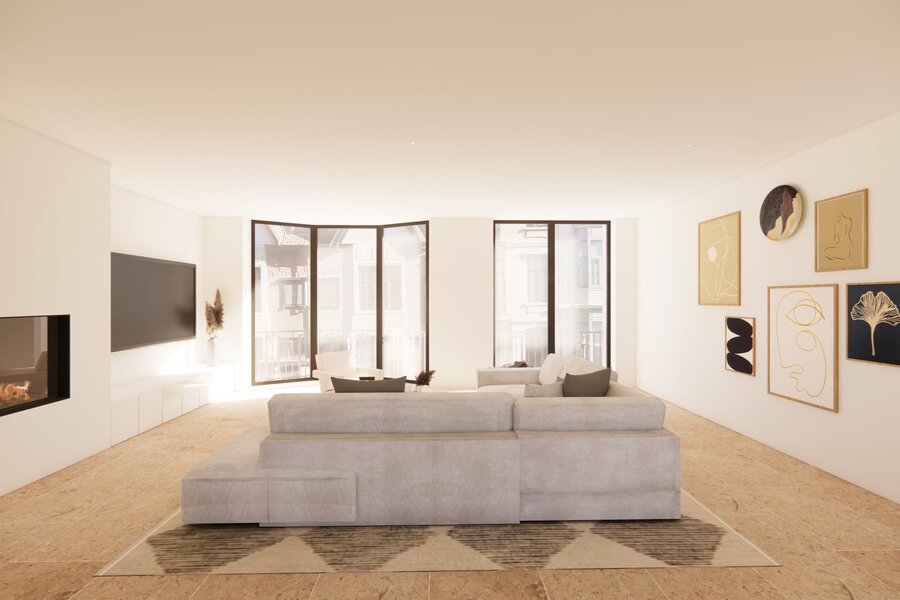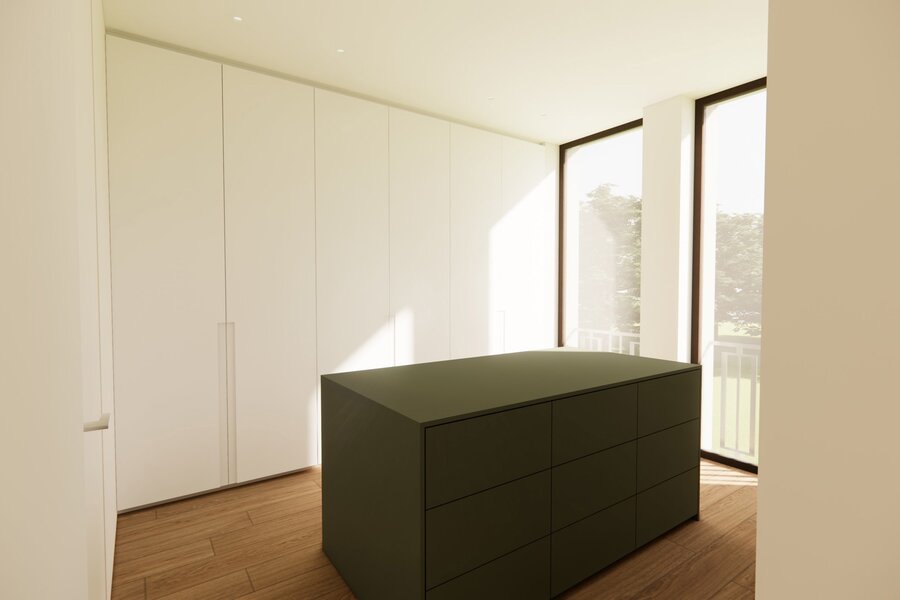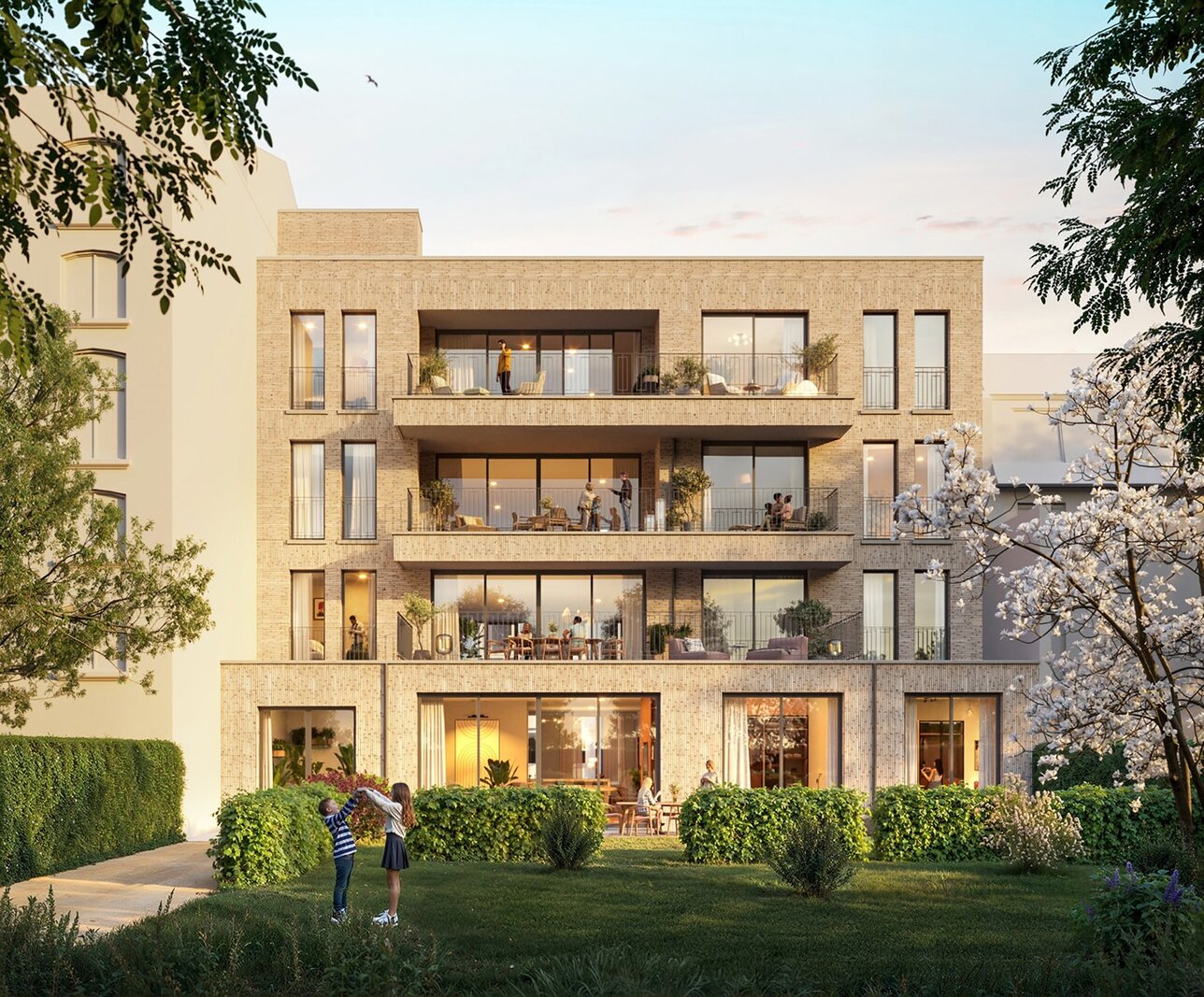 Elk appartement omvat drie slaapkamers, telkens met een eigen bad- of douchekamer. De leefruimtes worden gekenmerkt door hoge plafonds en raampartijen van vloer tot plafond, waardoor licht en ruimte een centrale rol innemen. Aan de achterzijde bieden de terrassen uitzicht op de tuin; de voorgevel is voorzien van bow-windows of balkons. Een voortuin en de ruime tuin versterken het groene en rustige karakter van dit unieke project. De keuken is uitgerust met hoogwaardige inbouwtoestellen van Miele en een Quooker. De master suite biedt een en suite dressing en een badkamer uitgevoerd in Italiaans design. Doorlopende parketvloeren zorgen voor een harmonieuze afwerking in alle leefruimten en slaapkamers. Daarnaast is er per unit een aparte bureauruimte en/of extra bergruimte aanwezig.