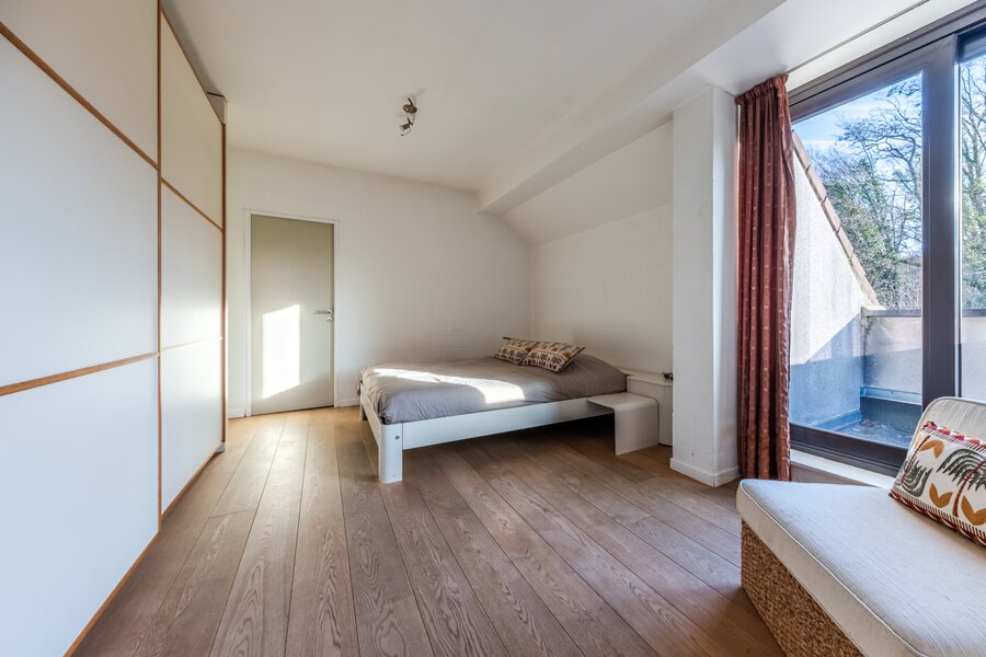 Dankzij de modulaire indeling is dit een ideale plek voor een groot gezin of voor de uitoefening van een vrij beroep. Het hoofdgedeelte biedt momenteel drie slaapkamers en twee badkamers, terwijl een afzonderlijk appartement beschikt over twee slaapkamers en een badkamer.