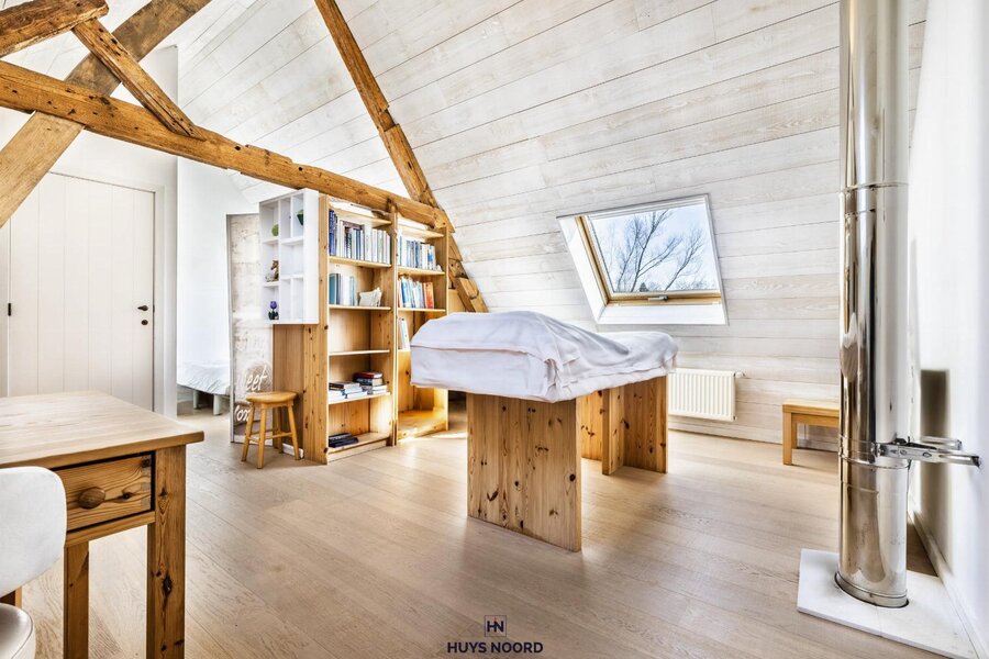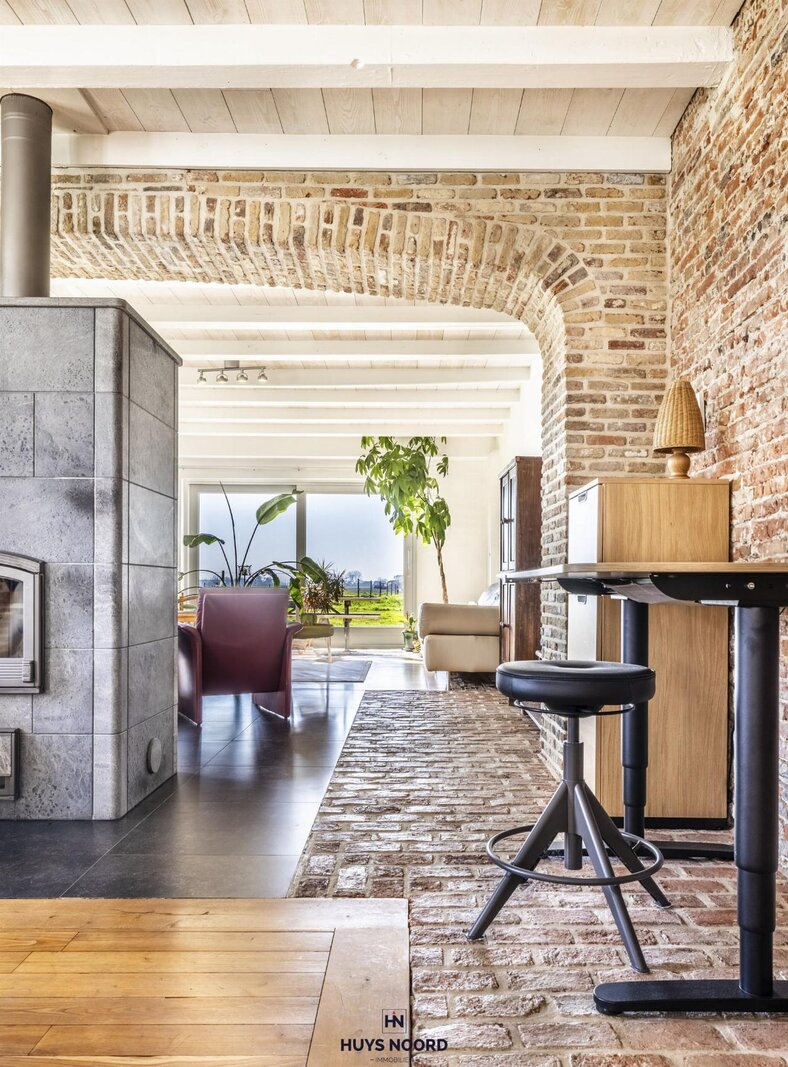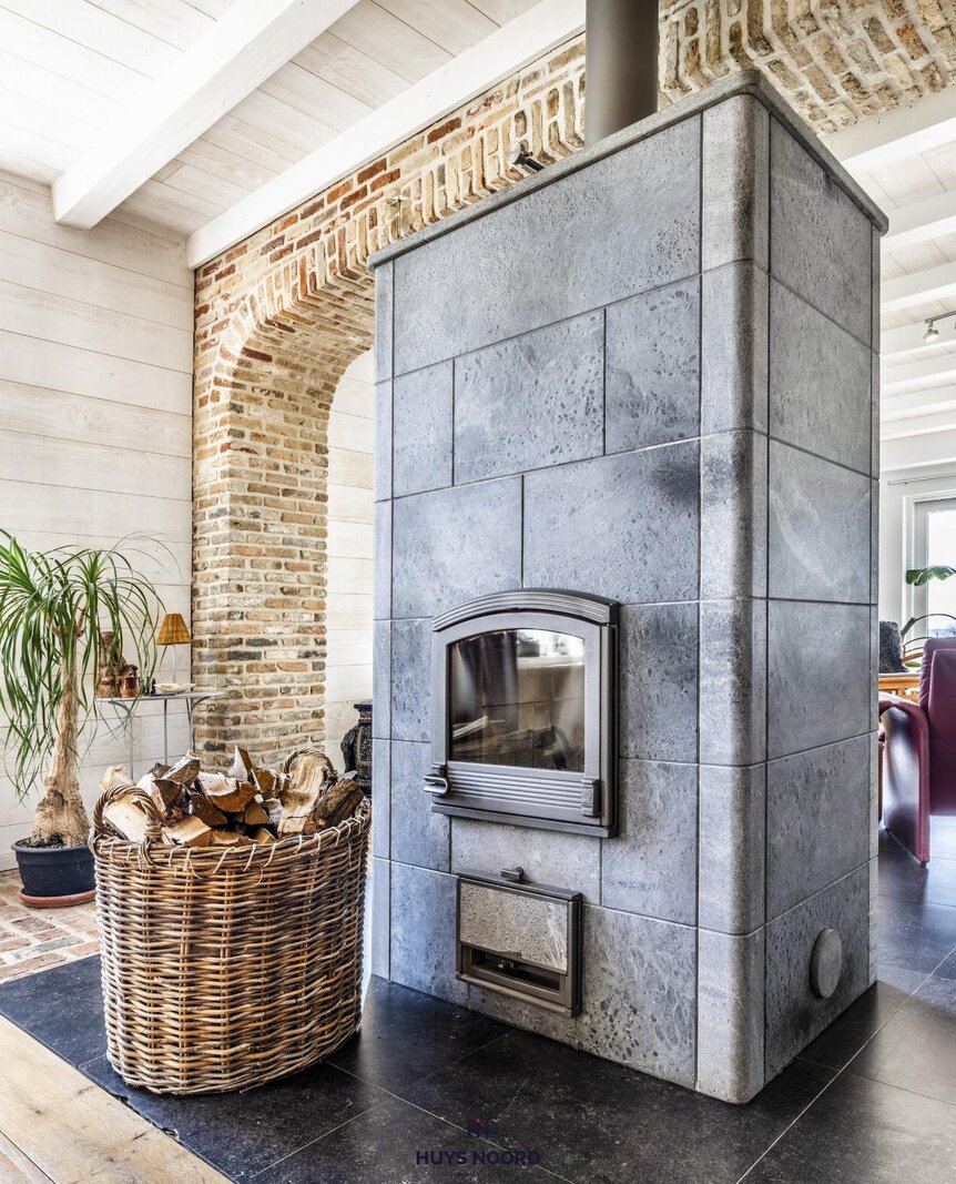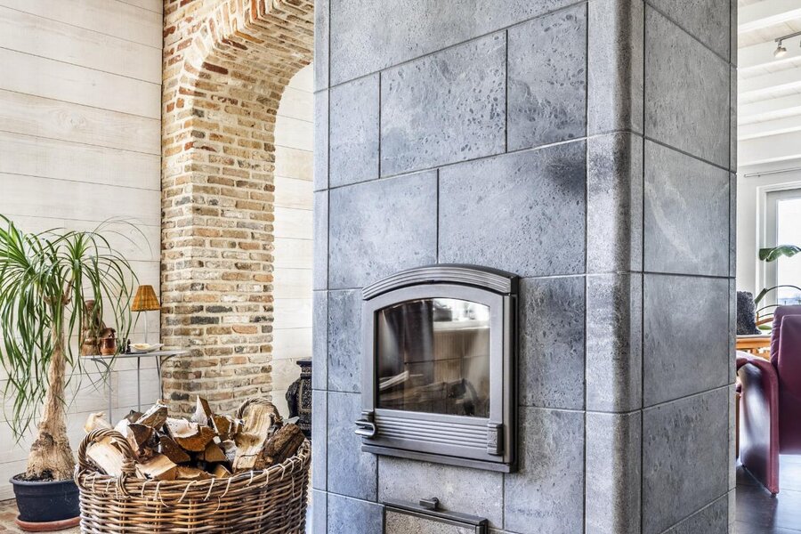 Zowel de woon- als eetkamer geniet gezelligheid doormiddel van de centraal geïnstalleerde speksteenkachel.