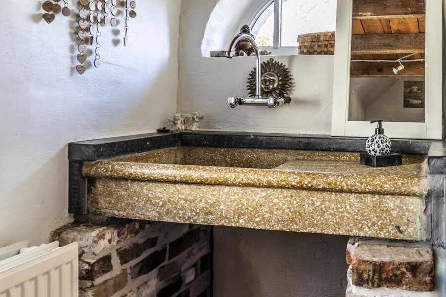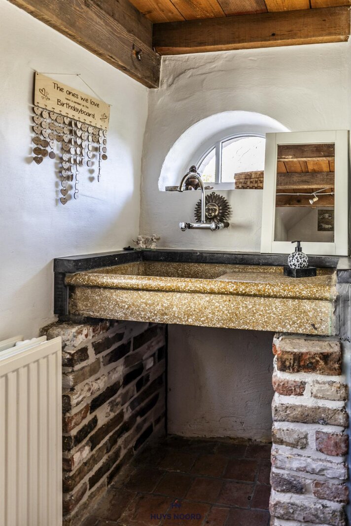 Inkomhal met gastentoilet - authentieke wastafel en kelderberging.