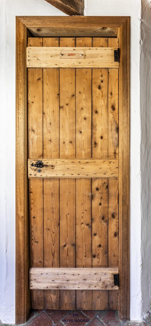 Het bijgebouw is ingericht met een badkamer met douche, toilet en wastafelmeubel.