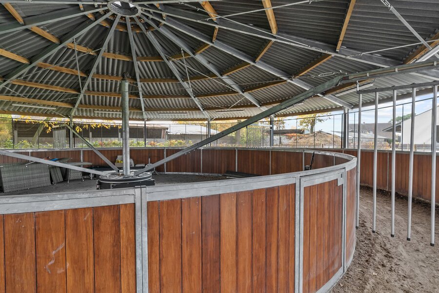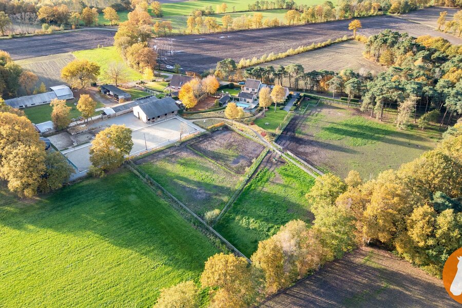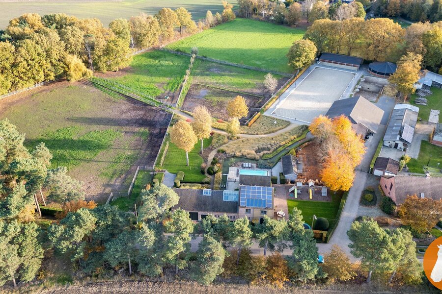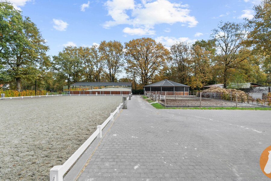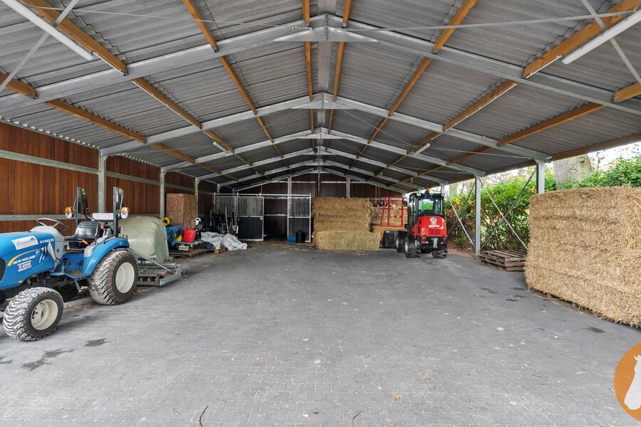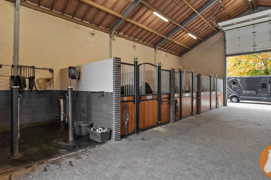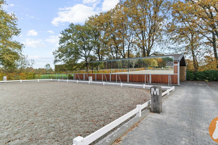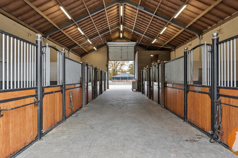 Voor de paardenliefhebber beschikt de eigendom over een vergunde 20 x 60 eb- en vloedpiste, een mooi stallencomplex met ruime paardenboxen, brede stallengang, wasplaats en zadelruimte, overdekte stapmolen en loods.