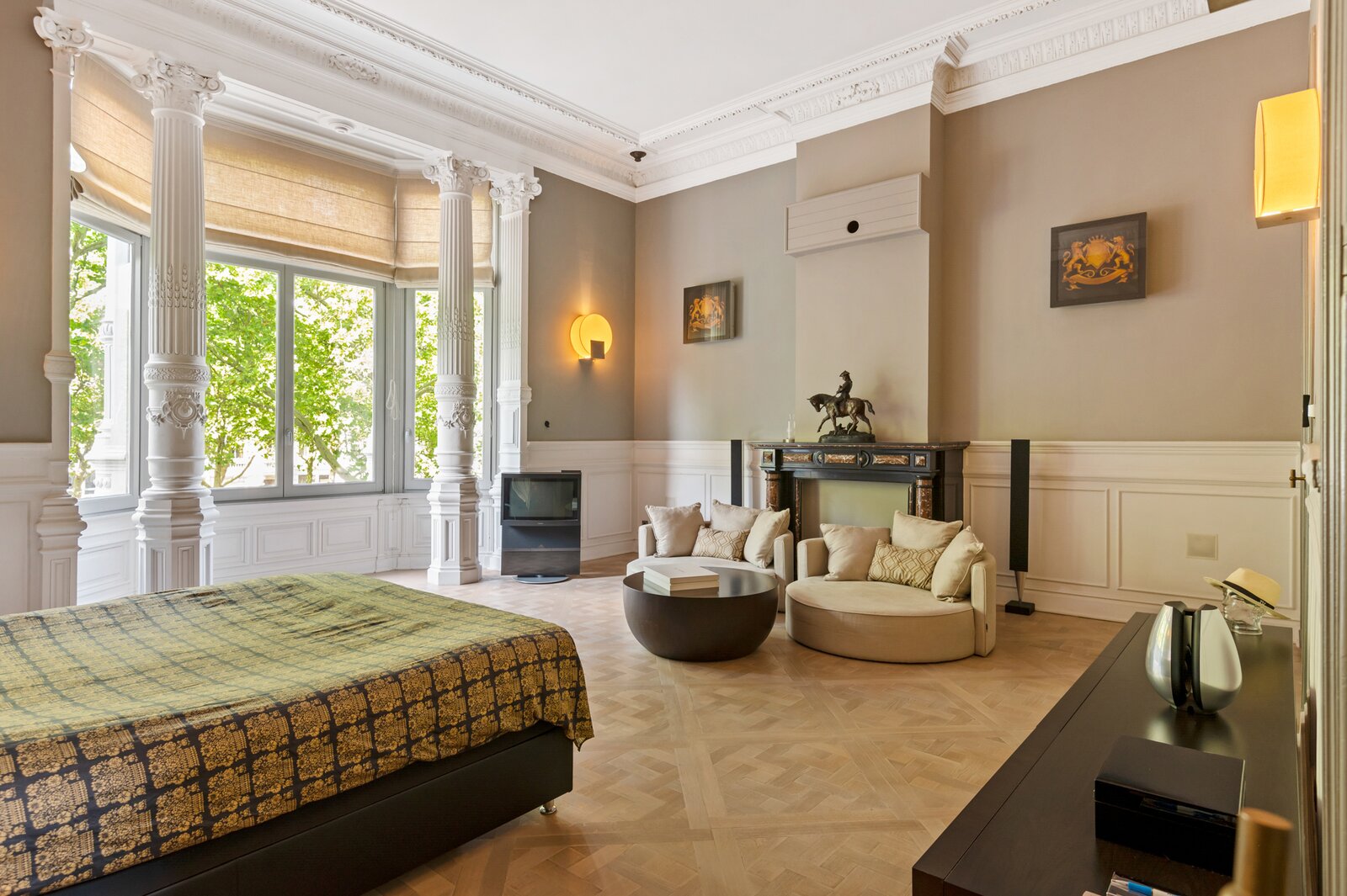 Op de derde en bovenste verdieping bevindt een royale biljart- en relaxruimte en een slaapkamer met en-suite badkamer, waarbij het panoramische uitzicht op het Museum voor Schone Kunsten een absoluut hoogtepunt vormt.
