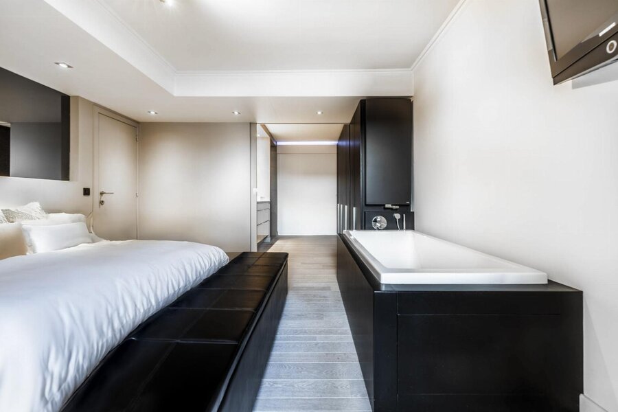 Beide slaapkamers geven, doormiddel van kwalitatieve schuifwanden, toegang tot de dressing en master-badkamer.