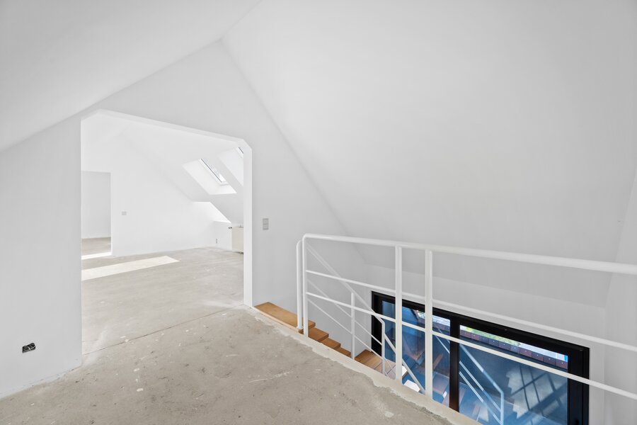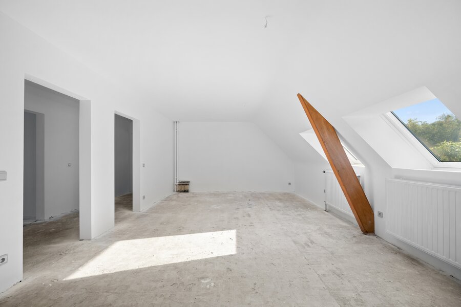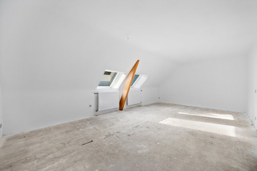 Onder het dak op de tweede verdieping is er een hal, een polyvalente kamer en twee slaapkamers.