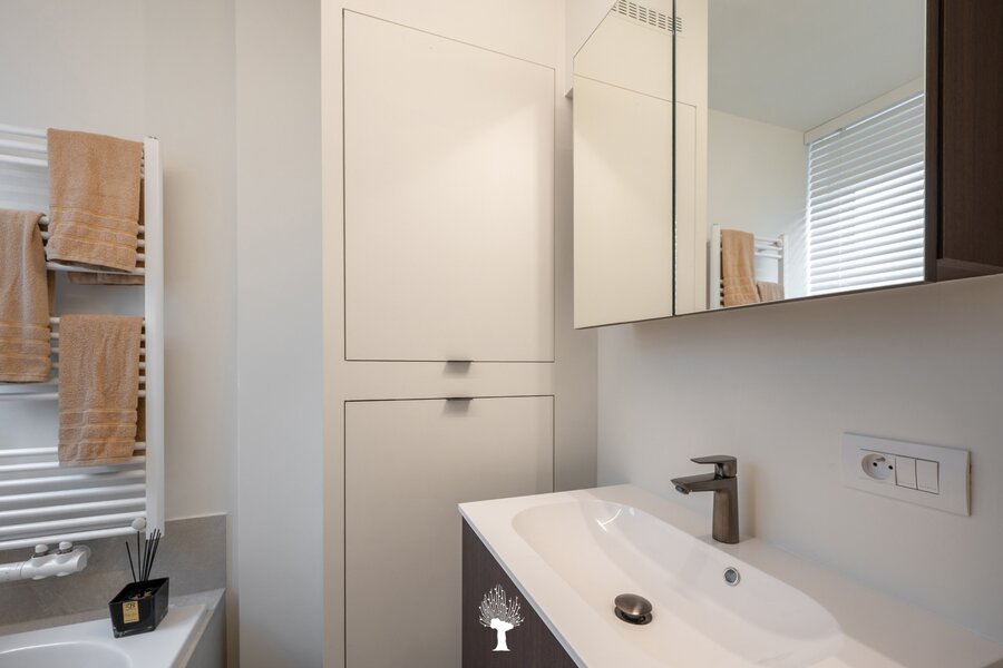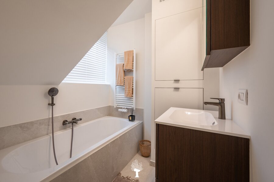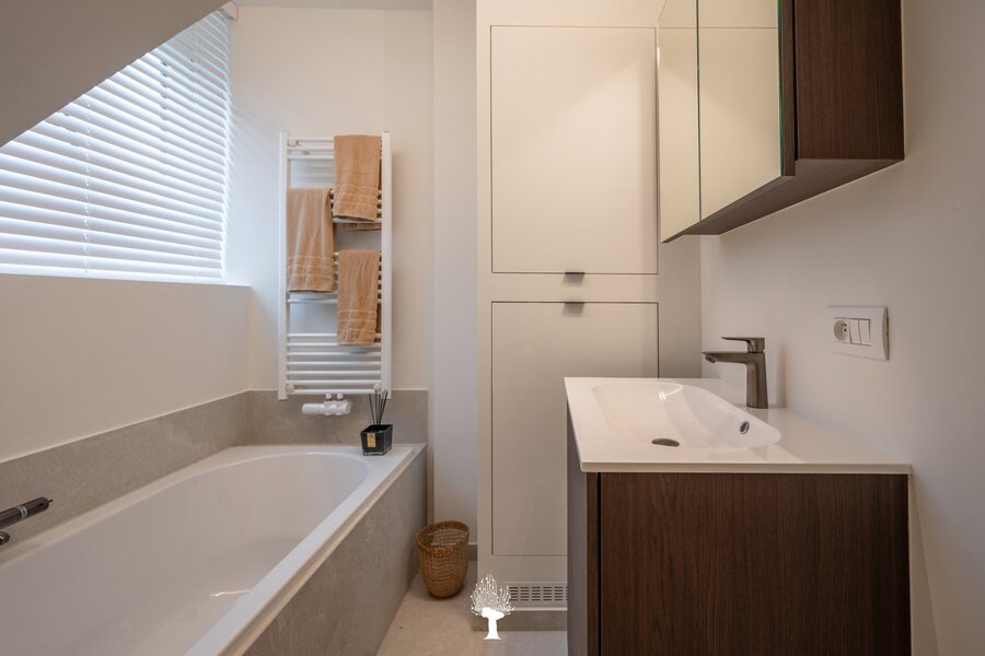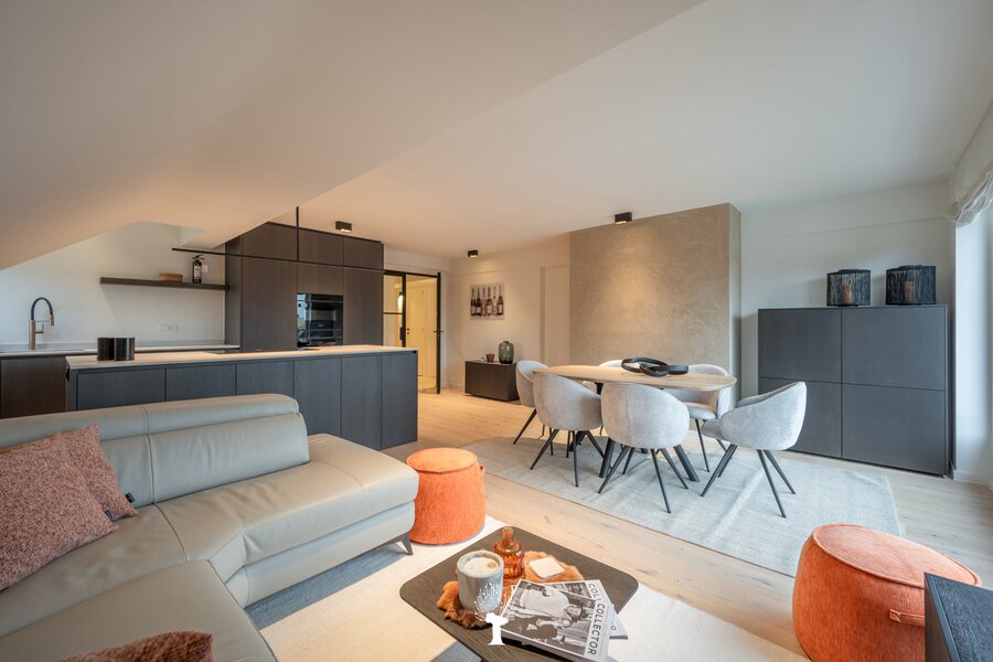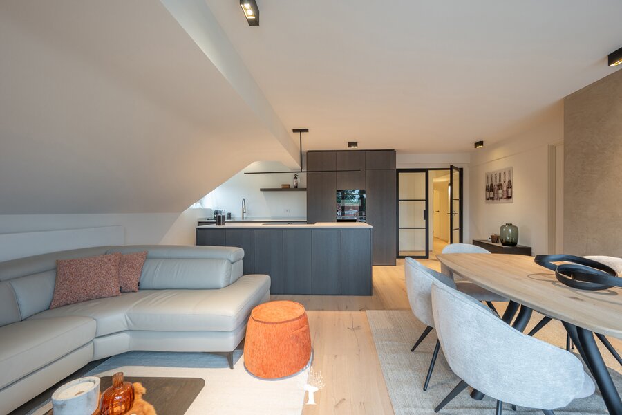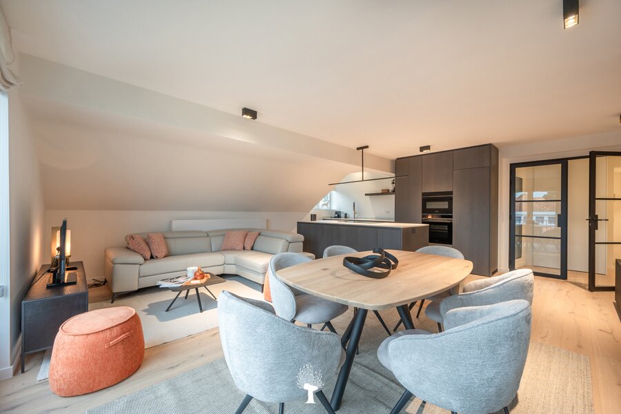 Gerenoveerd appartement in een charmante villa-residentie op een sublieme locatie in het Zoute, vlakbij het Dominicanenkerkje. Indeling: Inkomhal met vestiaire en gastentoilet. Aangename woonkamer voorzien van een zithoek en eethoek, uitgevend op het terras. Open keuken. 3 slaapkamers. Badkamer en douchekamer Twee privatieve kelders en gemeenschappelijke fietsenberging in de residentie. Mogelijkheid om een gesloten garagebox in de residentie aan te kopen met plaats om een tweede wagen te parkeren voor de garage.