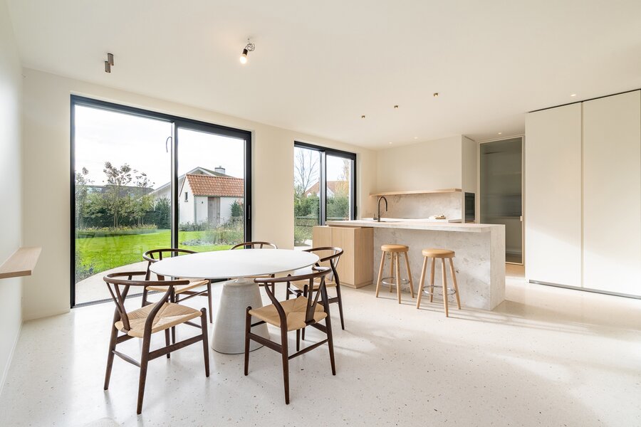 Deze woning werd gerealiseerd met uitzonderlijke aandacht voor detail en voldoet aan de hoogste kwaliteitsnormen. Ze onderscheidt zich door haar hoogwaardige afwerking en warme, uitnodigende sfeer.