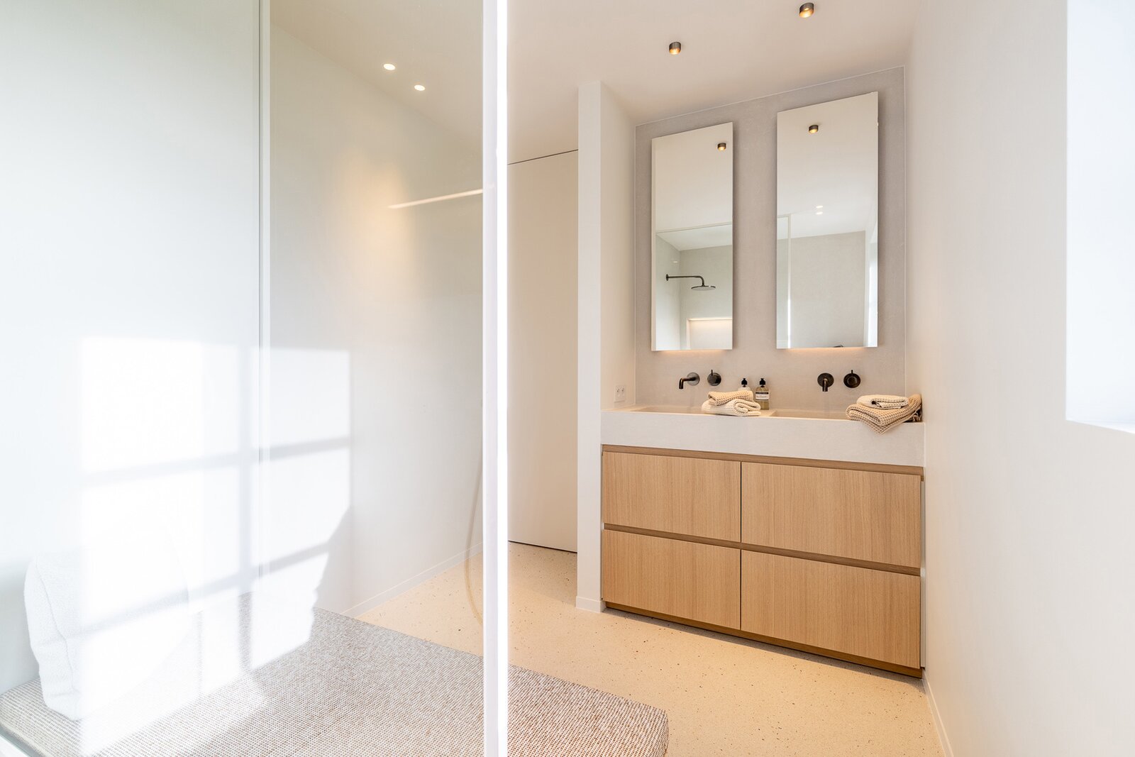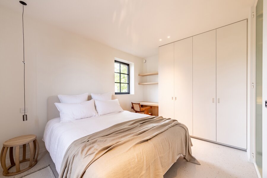 Op de eerste verdieping bevinden zich drie ruime slaapkamers, elk voorzien van ingemaakte kasten en een eigen badkamer. De master bedroom beschikt bovendien over een dressing en een ensuite badkamer.