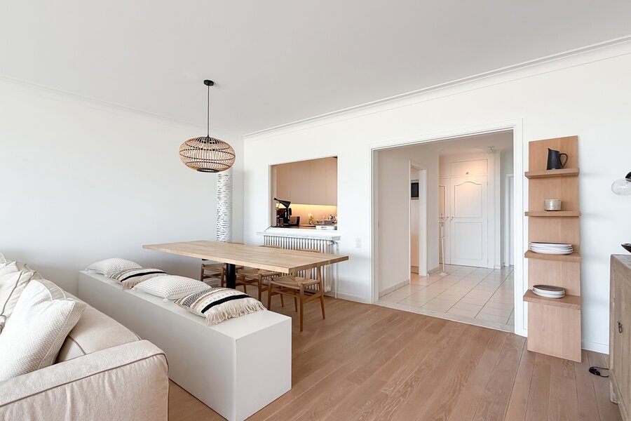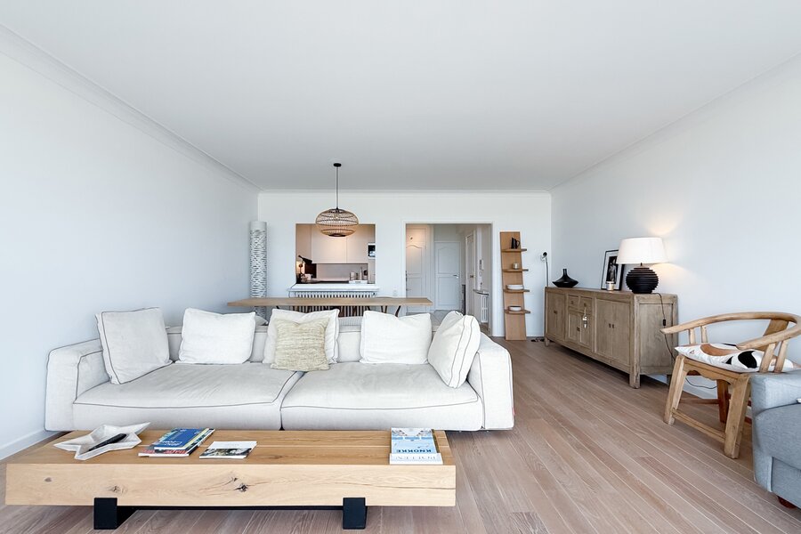 In een prestigieuze residentie op de Zeedijk in Het Zoute, op wandelafstand van het vernieuwde Albertplein, bevindt zich dit elegant afgewerkte appartement met frontaal zeezicht. Een unieke combinatie van topligging, lichtinval en kwalitatieve materialen.
