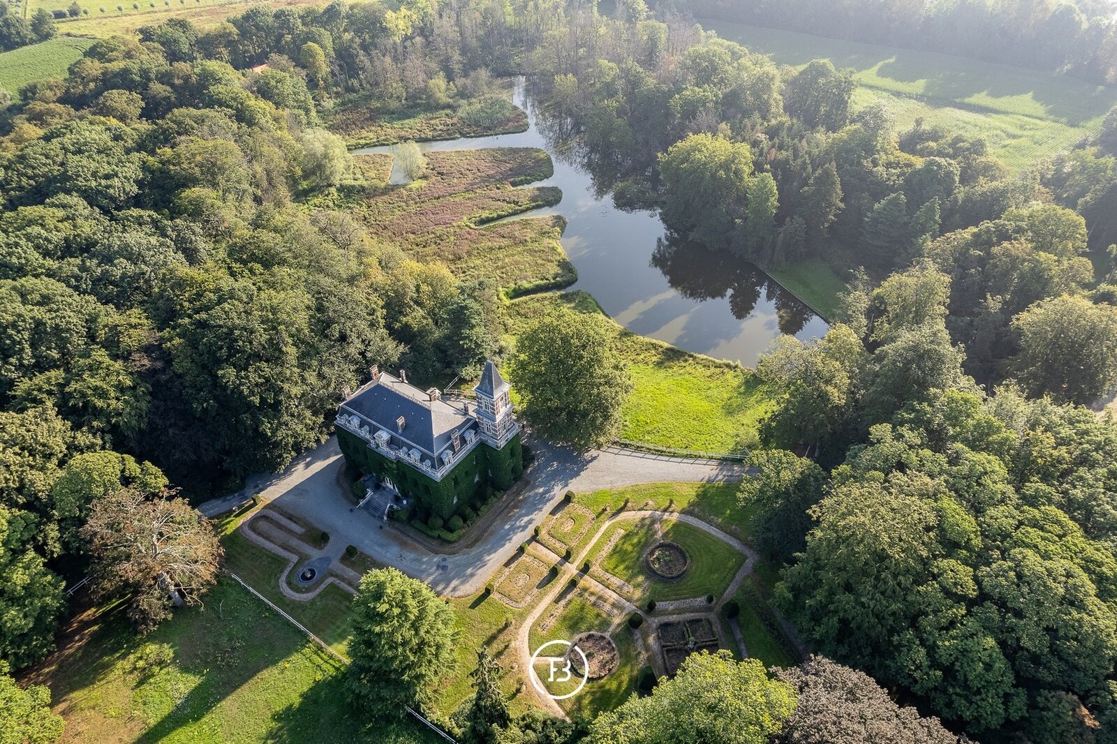 Het domein strekt zich uit over een prachtig parklandschap van circa 8 hectare en biedt een rustgevend uitzicht op een sfeervolle natuurlijke waterpartij. Dankzij de indrukwekkende volumes en het grote aantal kamers beschikt het kasteel over een uitzonderlijk potentieel en tal van mogelijkheden.