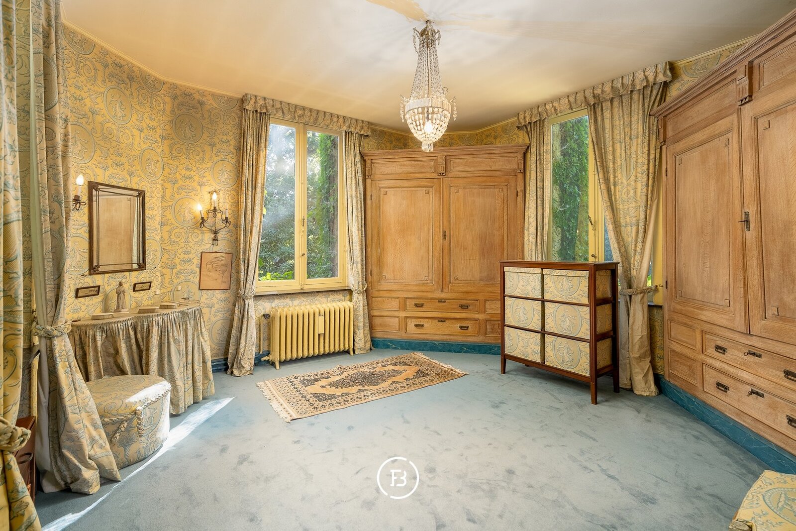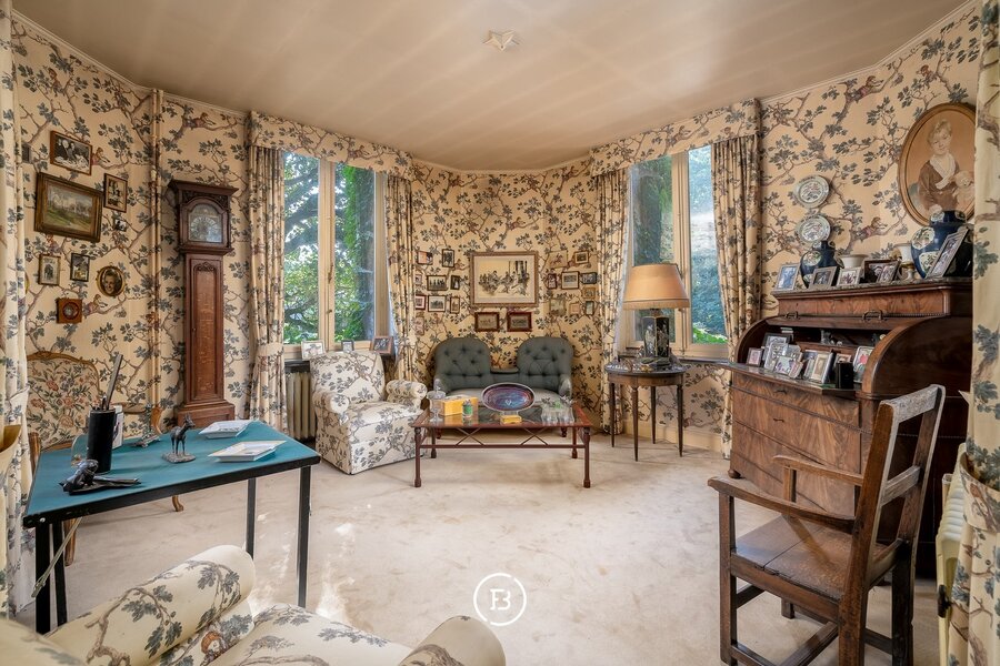 De eerste verdieping omvat 4 slaapkamers, twee badkamers en twee bijkomende ruimtes die perfect kunnen dienen als dressing of berging. Hier bevindt zich eeneens een bureau (of 5e slaapkamer). Op het tussenverdiep bevindt zich een derde badkamer. De tweede verdieping telt drie slaapkamers, een strijkkamer en een extra salon.