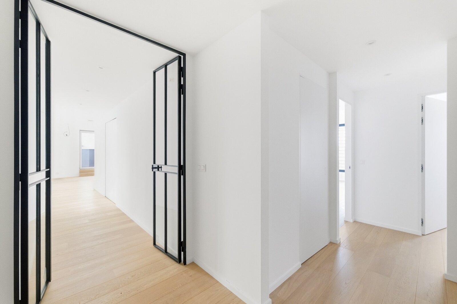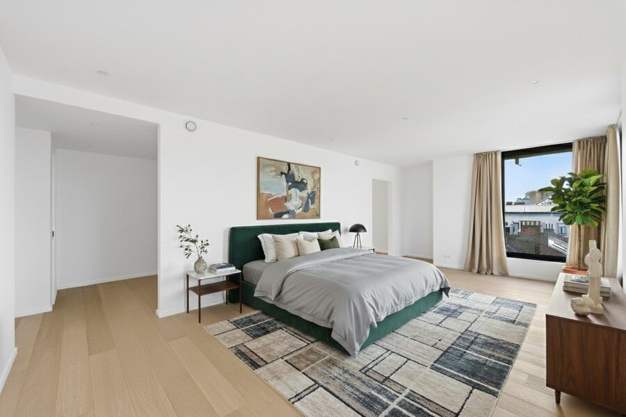 De afwerking getuigt van een uitzonderlijk verfijnd niveau: edele materialen, maatwerk schrijnwerk, geïntegreerde verlichting en volledige domotica. Mogelijkheid tot aankoop van een parkeerplaats in de kelder (45.000 €).