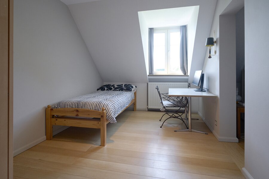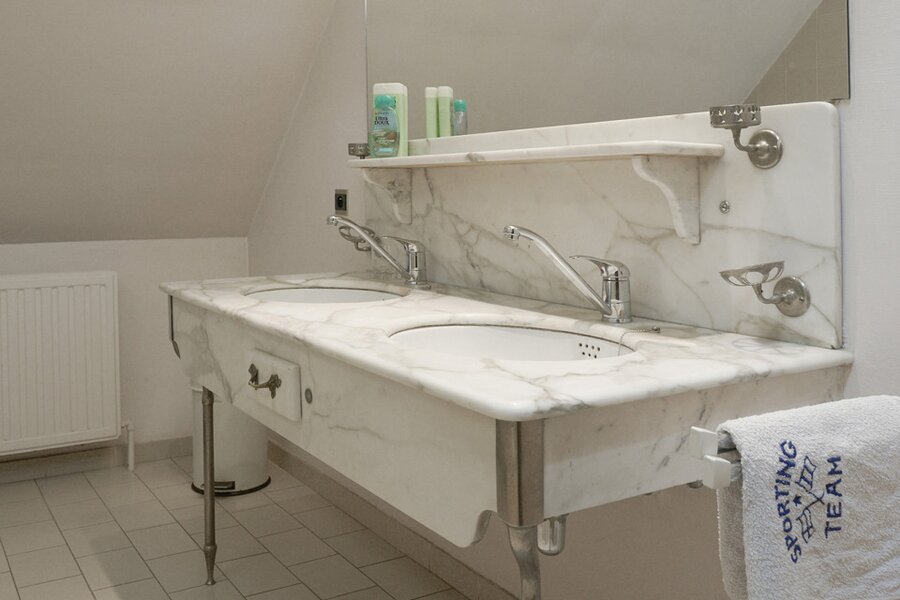 Op de verdieping geeft de nachthal toegang tot een ouderlijke suite, vier bijkomende slaapkamers, twee opeenvolgende kamers met buitentoegang, twee badkamers en een apart toilet. Een zolder biedt extra bergruimte.