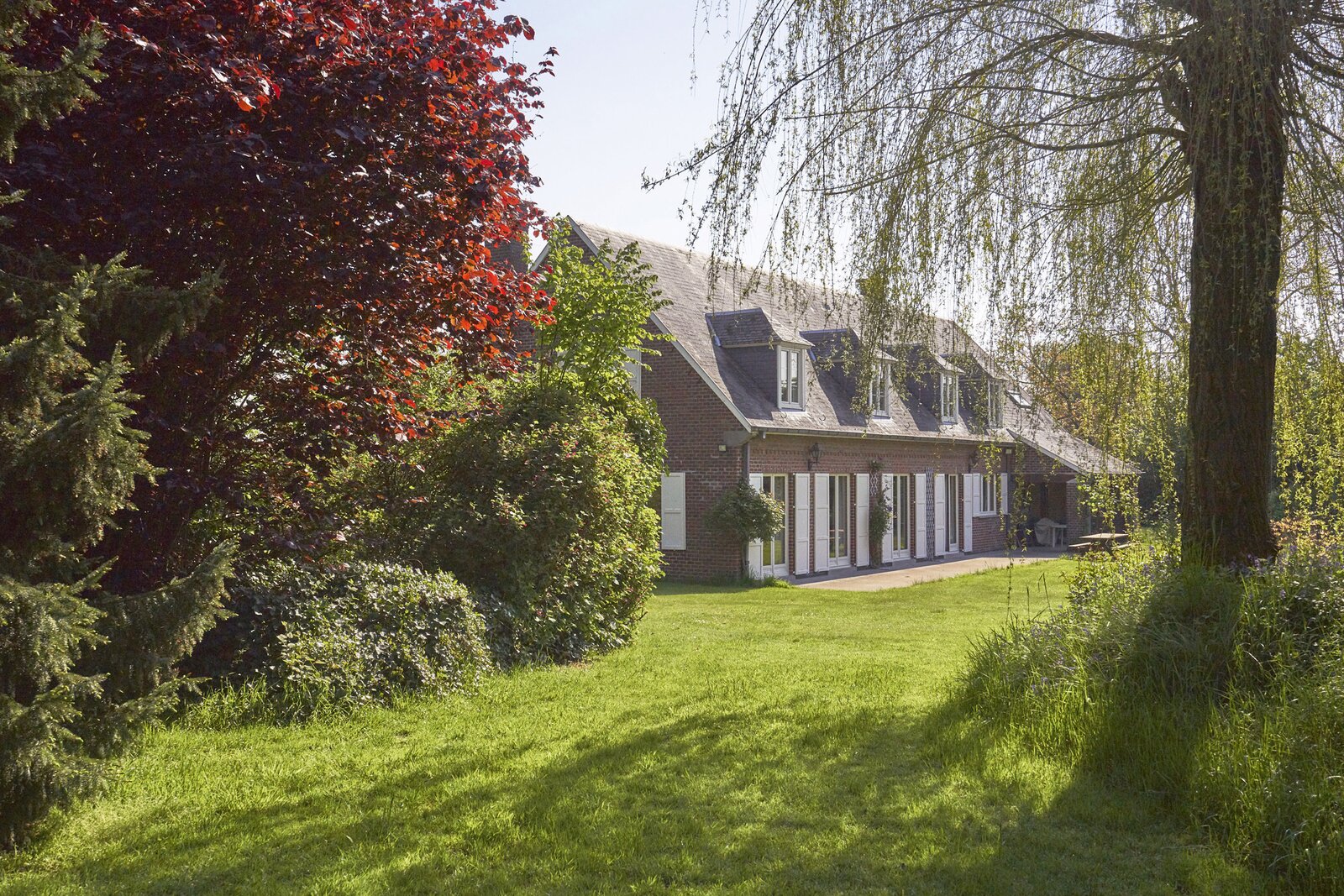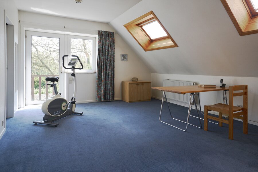 Buiten geniet u van de glooiende tuin, het zuidgerichte terras, het tuinhuis en de ruime aangelegde parking.
