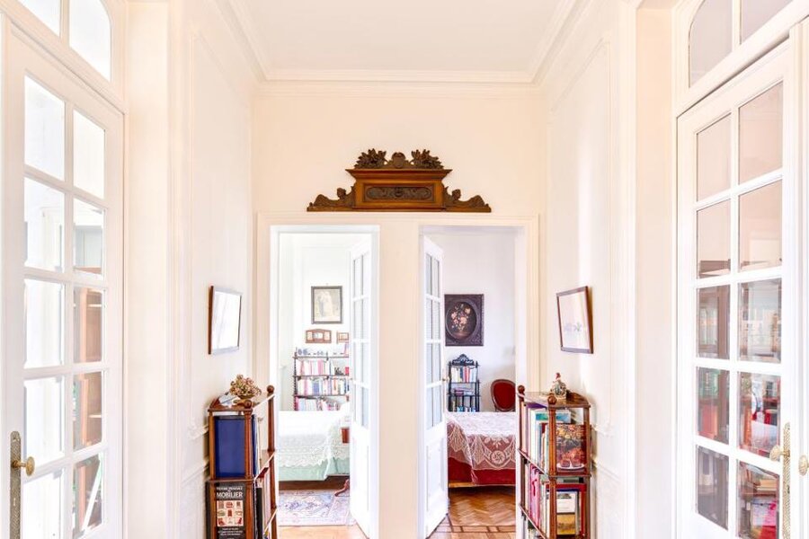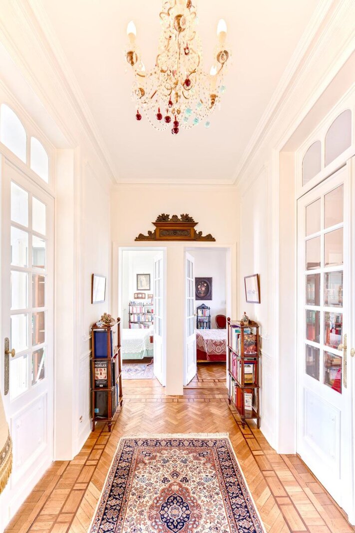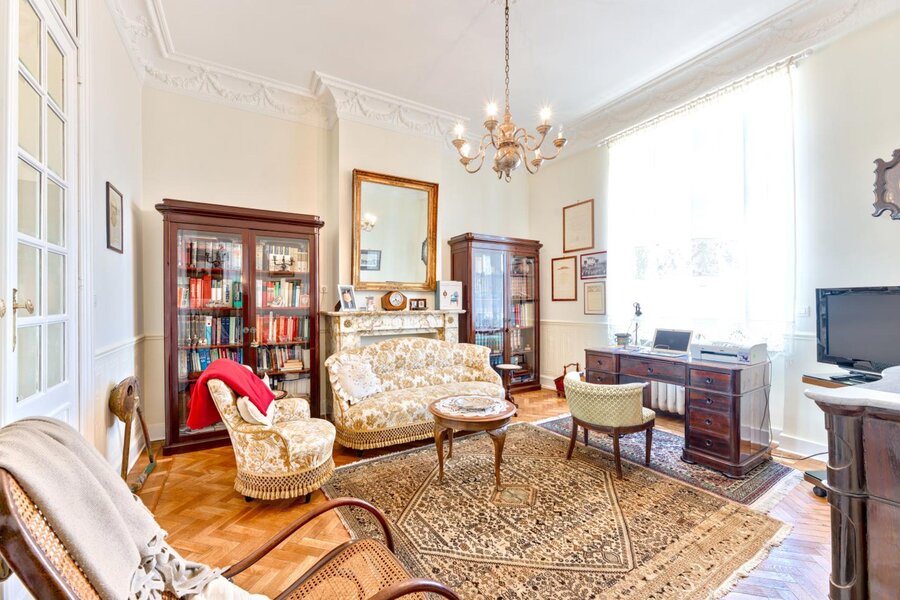 In de zeer gewilde wijk van de Avenue Molière en de Place Brugmann, in een gebouw van hoge standing in Haussmann-stijl, 1912, met een bijzonder elegante gevel in Beaux Arts-stijl, mooi appartement van 255 m² op de 6e verdieping (laatste verdieping bezet). Mooie recepties in enfilade, parketvloer, verfijnde decoratie, hoog plafond, 4 slaapkamers, badkamer. 2 zolderkamers op de 7e verdieping. Mogelijkheid tot garage. Peb F.