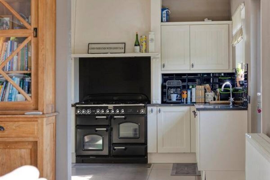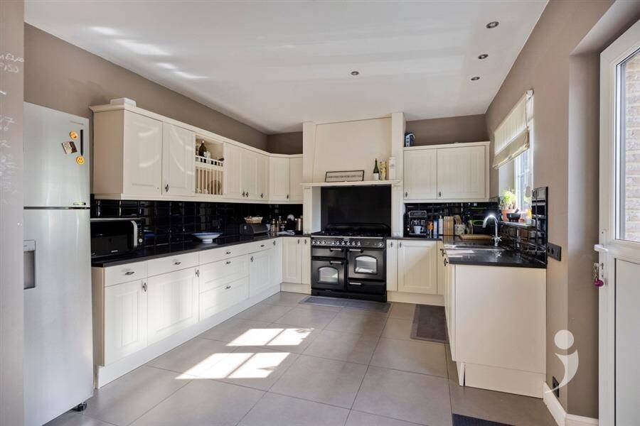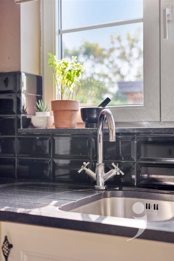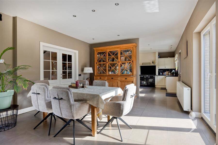 De lichtrijke leefruimte met houtkachel vormt het hart van de woning en straalt pure gezelligheid uit. Aansluitend bevinden zich de eetplaats en de volledig uitgeruste keuken, voorzien van alle nodige comfort, voldoende kastruimte en kwalitatieve toestellen ideaal voor wie graag kookt en geniet.